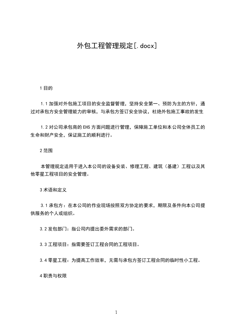 本管理规定适用于进入本公司的设备安装、修理工程、建筑(基建)工程以及其他零星工程项目的安全管理。
