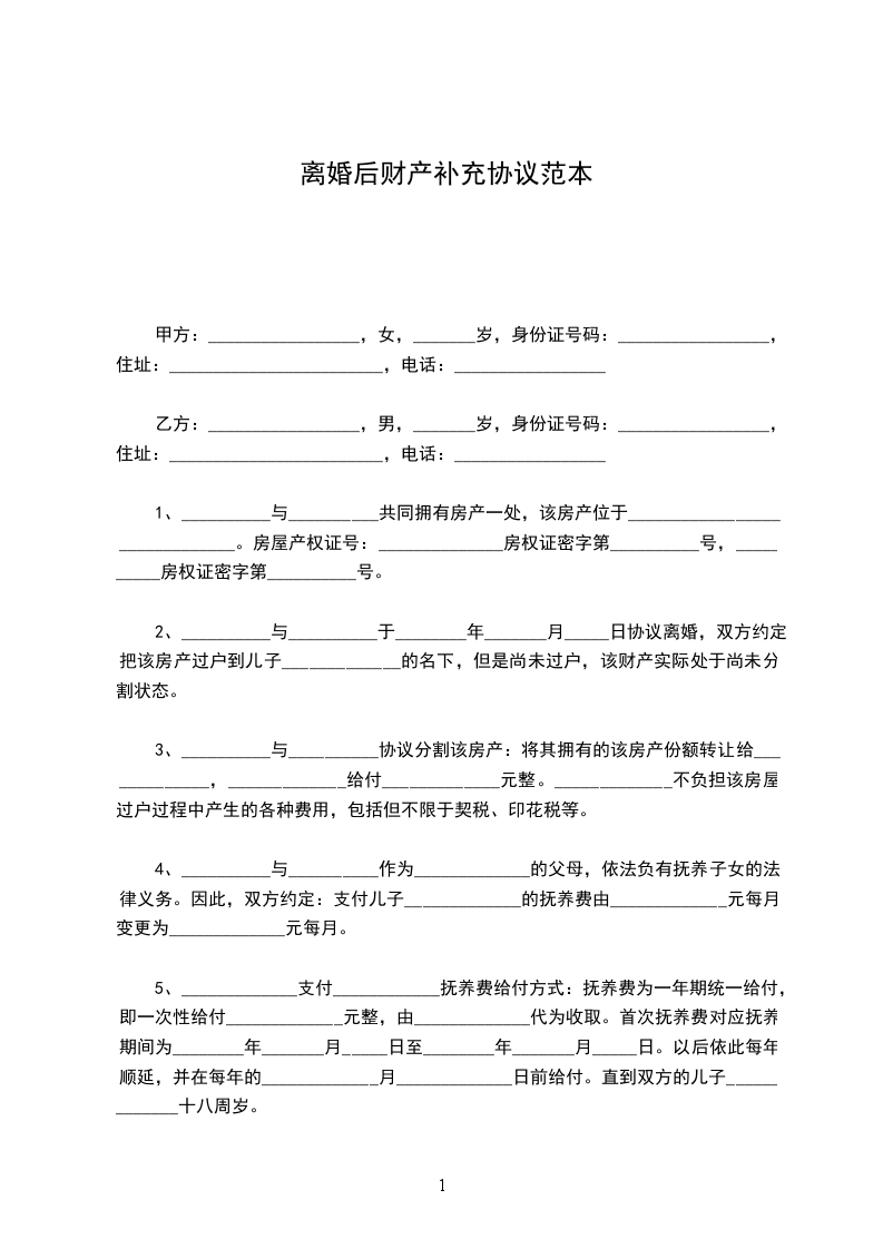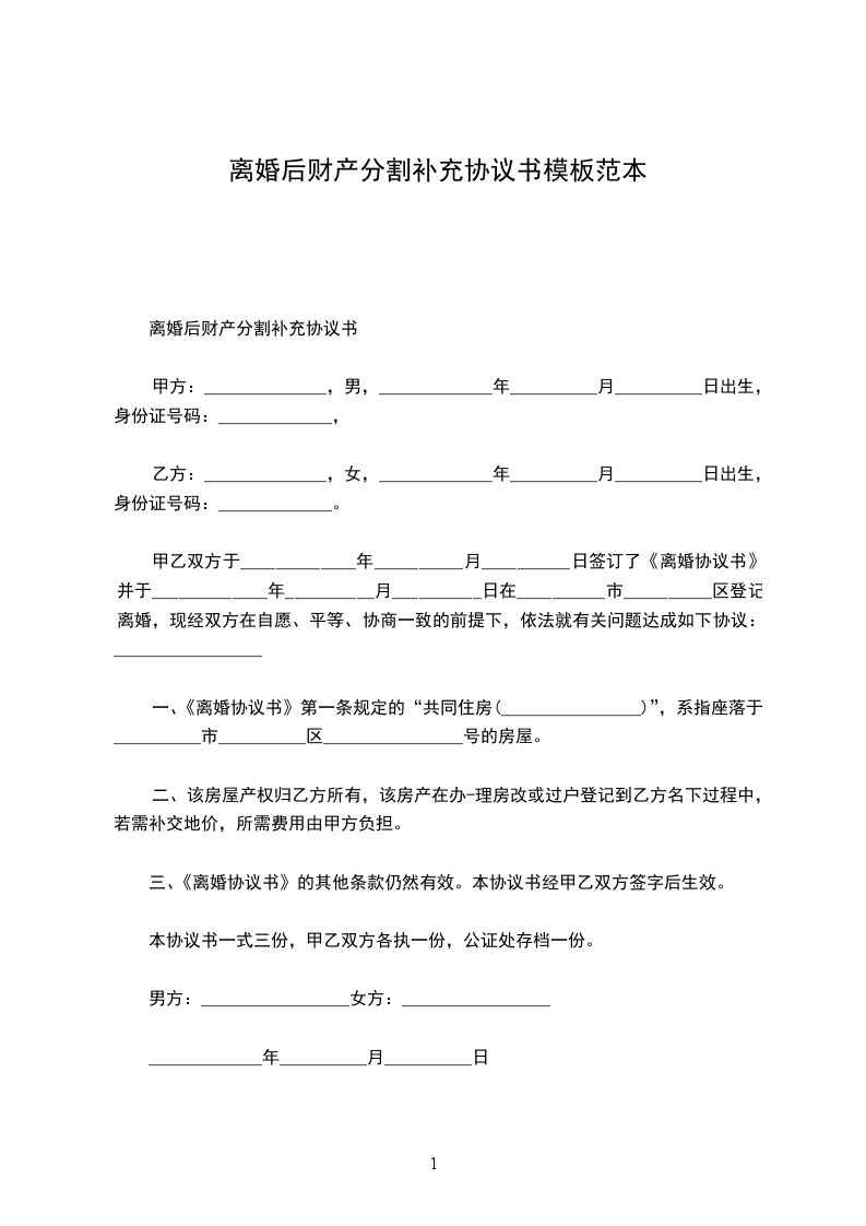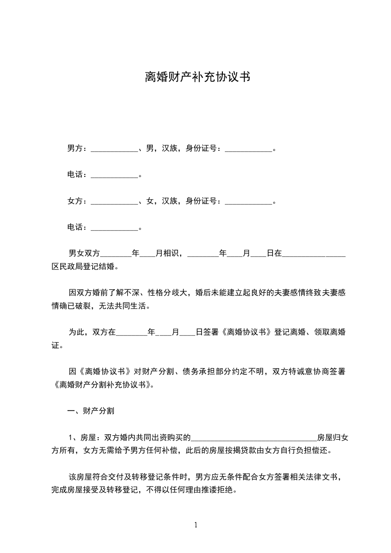 9、__________与__________如在该离婚财产分割补充协议履行过程中产生争议,由_____________________________人民法院进行争议的管辖。