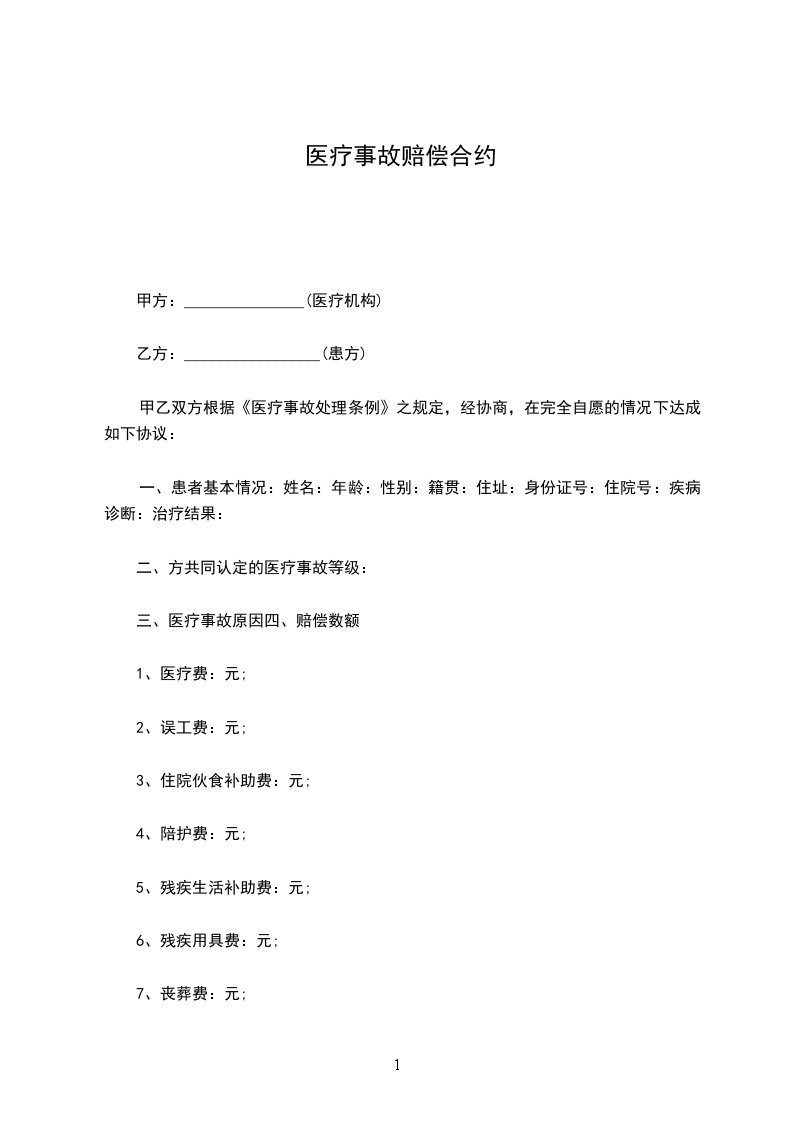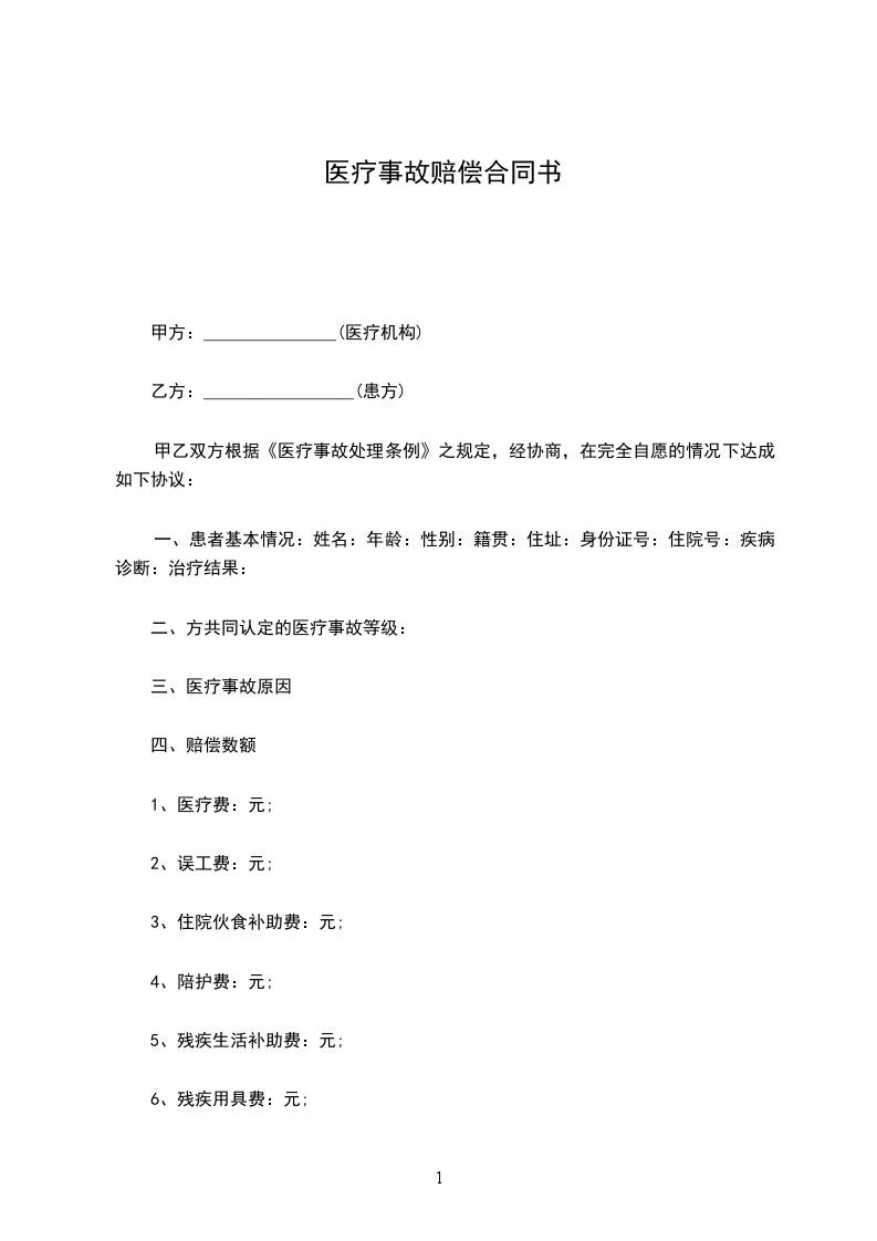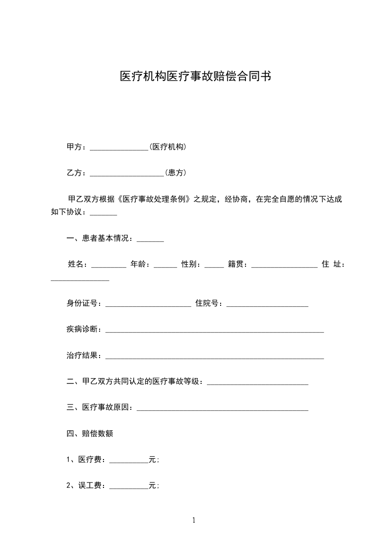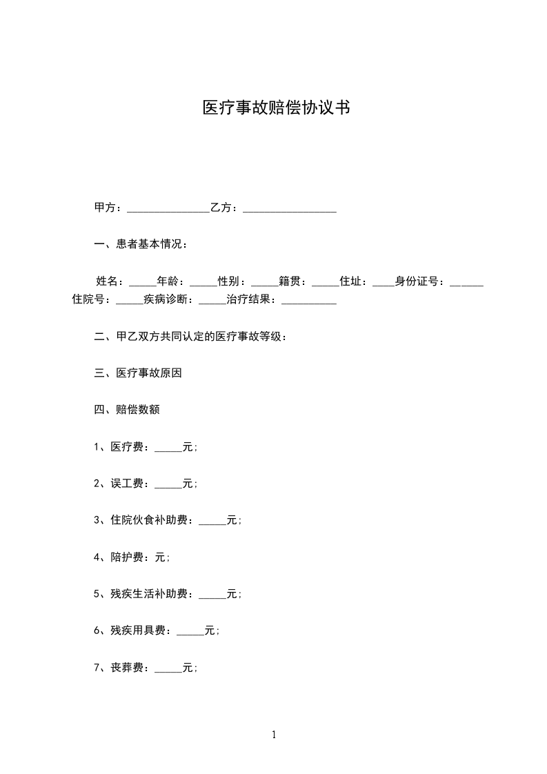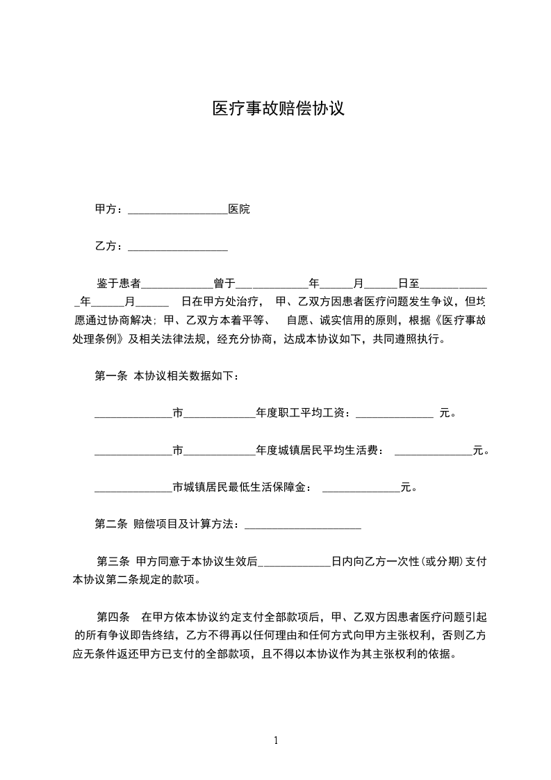 鉴于患者_____________曾于_____________年______月______日至_____________年______月______ 日在甲方处治疗, 甲、乙双方因患者医疗问题发生争议,但均愿通过协商解决; 甲、乙双方本着平等、 自愿、诚实信用的原则,根据《医疗事故处理条例》及相关法律法规,经充分协商,达成本协议如下,共同遵照执行。