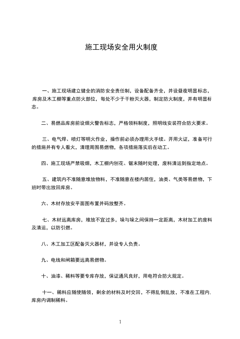 一、施工现场工程用火范围