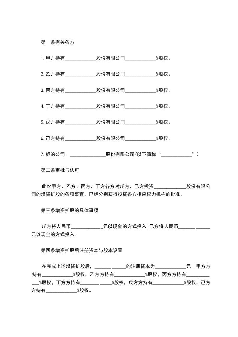 此次甲方、乙方、丙方、丁方各方对戊方、己方投资_____________股份有限公司的增资扩股的各项事宜,已经分别获得投资各方相应权力机构的批准。
