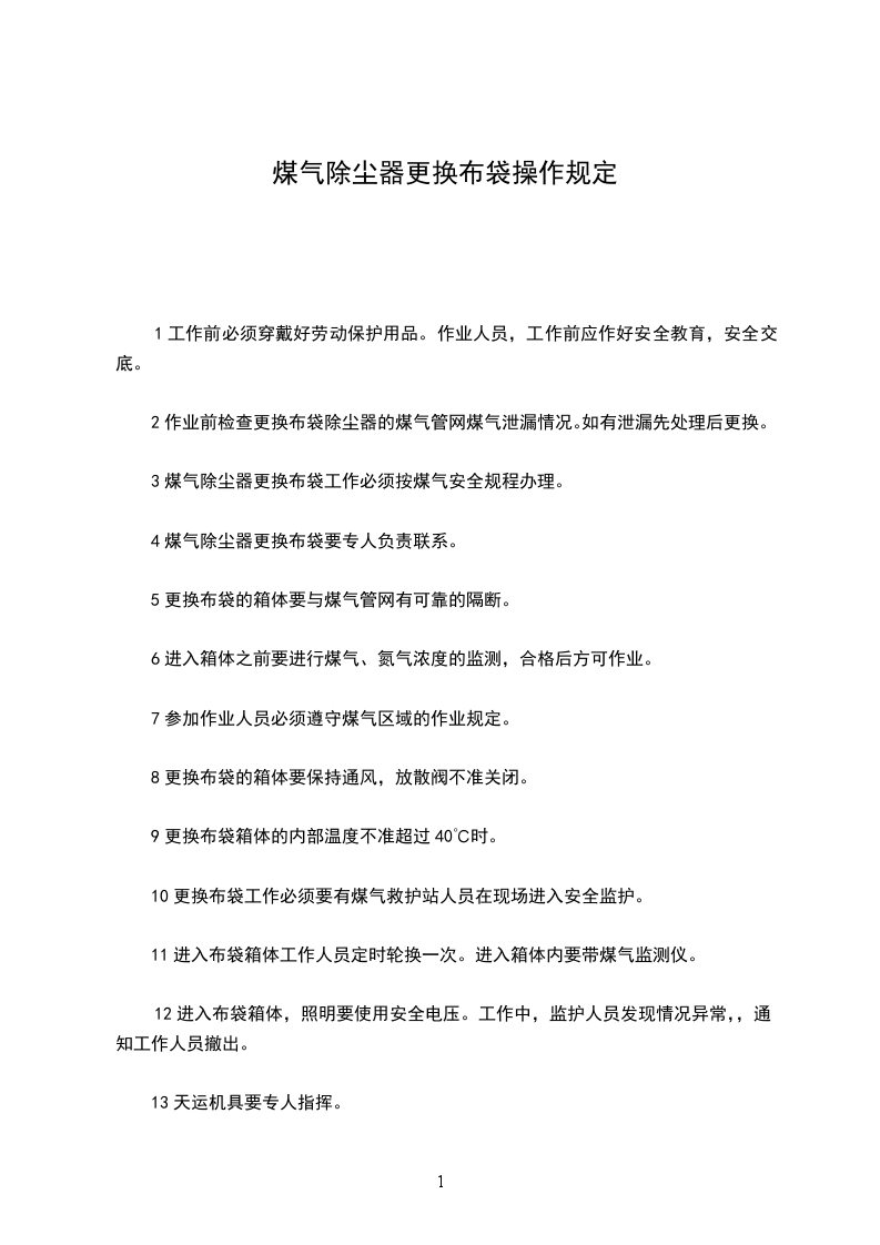 10更换布袋工作必须要有煤气救护站人员在现场进入安全监护。