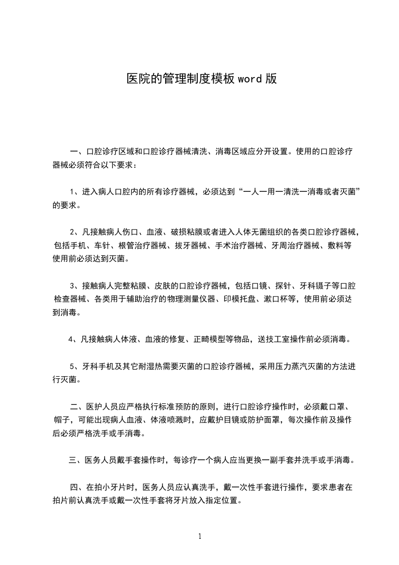 1、进入病人口腔内的所有诊疗器械,必须达到“一人一用一清洗一消毒或者灭菌”的要求。