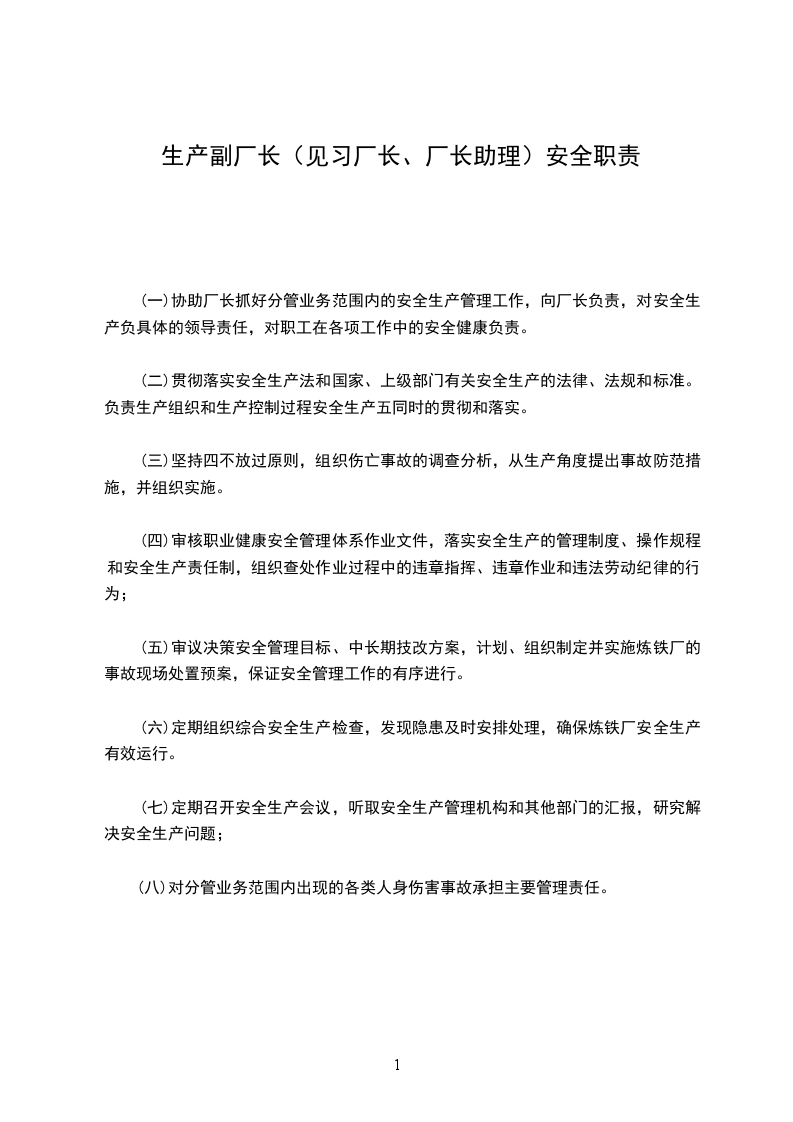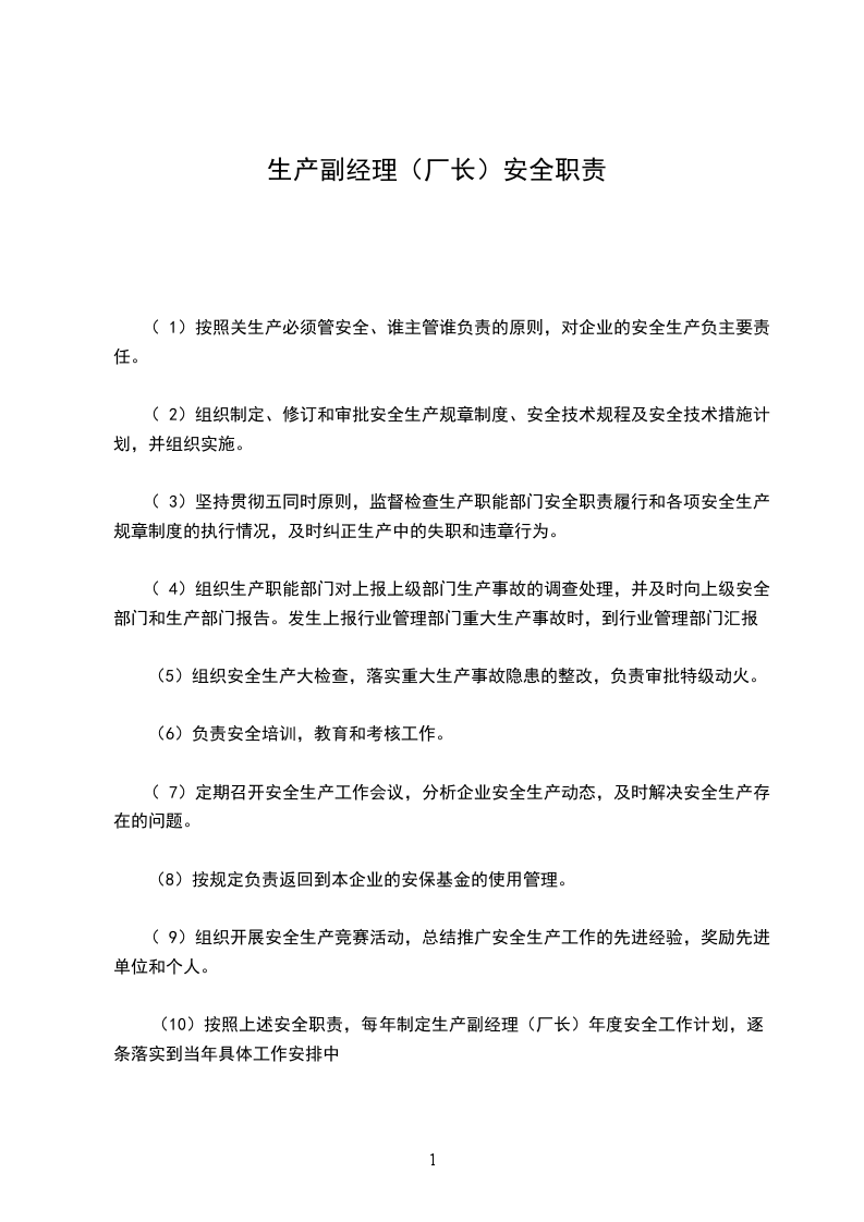 (一)协助厂长抓好分管业务范围内的安全生产管理工作,向厂长负责,对安全生产负具体的领导责任,对职工在各项工作中的安全健康负责。