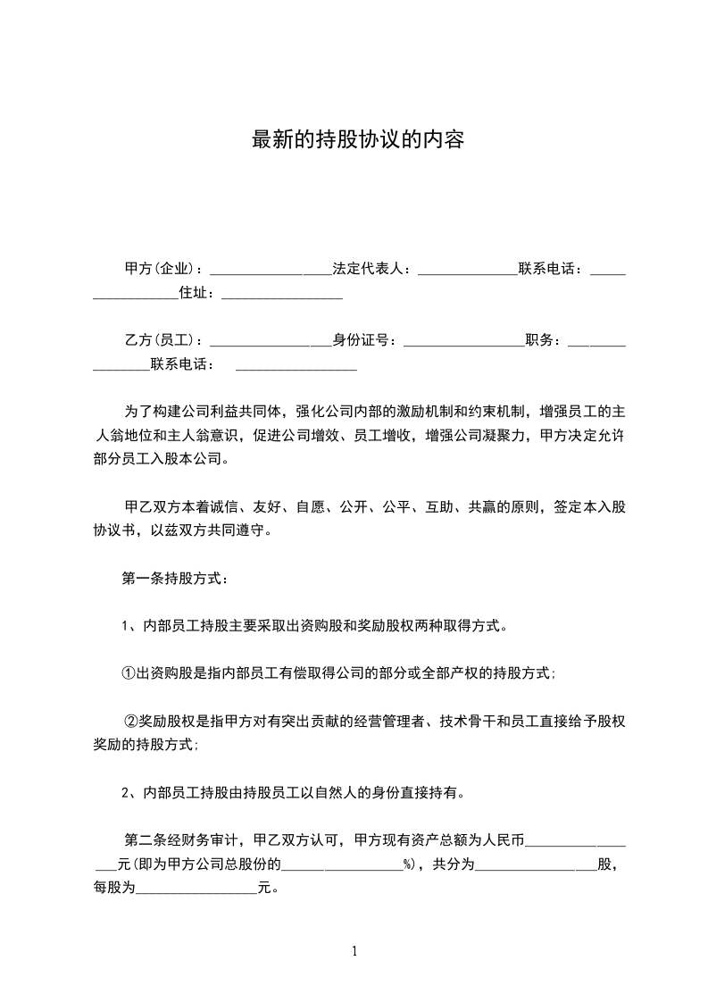 最新的持股协议的内容