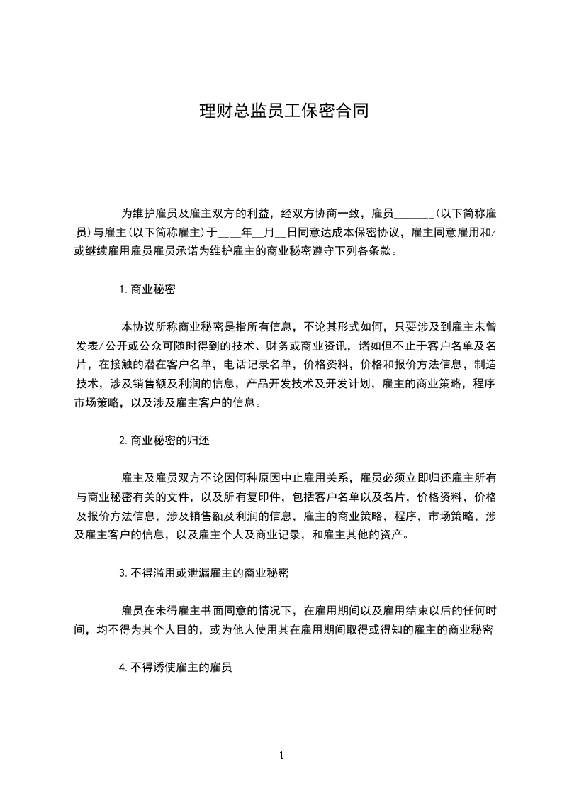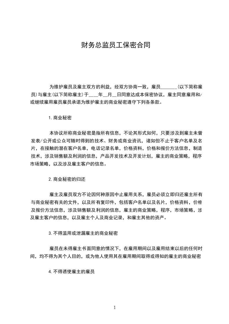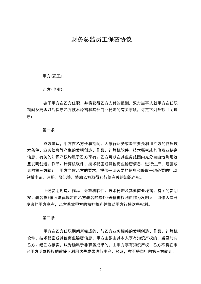外派财务总监员工保密协议