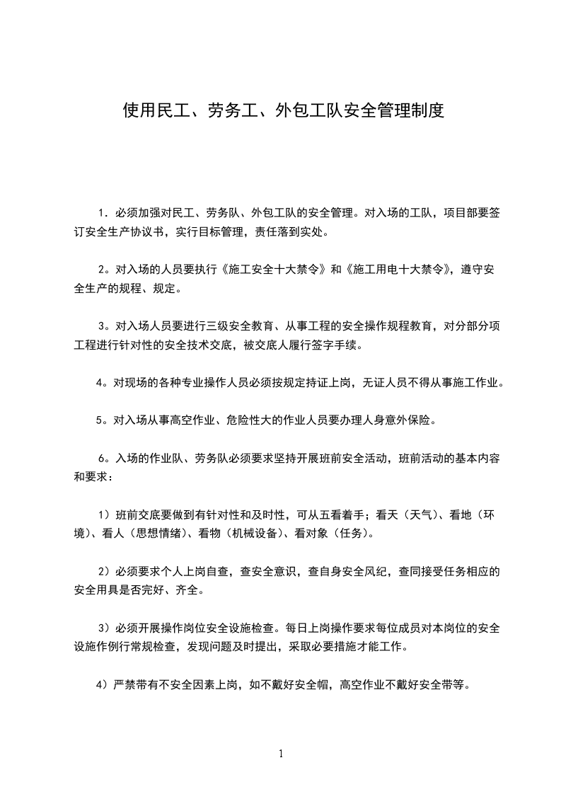 为了加强农民工、外包队安全管理,保护他们的安全与健康,保障我公司生产持续、健康发展,根据国家及有关劳动行政法律、法规以及交通部《关于加强交通企业农民工安全管理的意见》结合我公司使用农民工、外包队的实际,特制订本规定。