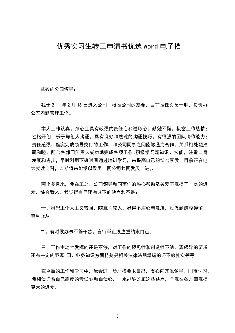 我于20__年x月x日成为公司的试用员工,作为一个应届毕业生,初来公司,以前很担心不知该怎样与人共处,该如何做好工作。但是公司宽松融洽的工作氛围、团结向上的企业文化,让我很快完成了从学生到职员的转变,让我较快适应了公司的工作环境。在本部门的工作中,我一向严格要求自我,认真及时做好领导布置的每一项任务。不懂的问题虚心向别人学习请教,不断提高充实自我,期望能够为公司做出更大的贡献。当然,初入职场,难免出现一些小差小错需领导指正。但前事之鉴,后事之师,这些经历也让我不断成熟,在处理各种问题时思考得更全面,杜绝类似失误的发生。在此,我要特地感谢部门的领导对我的入职指引和帮忙,感谢他们对我工作中出现的失误的提醒和指正。