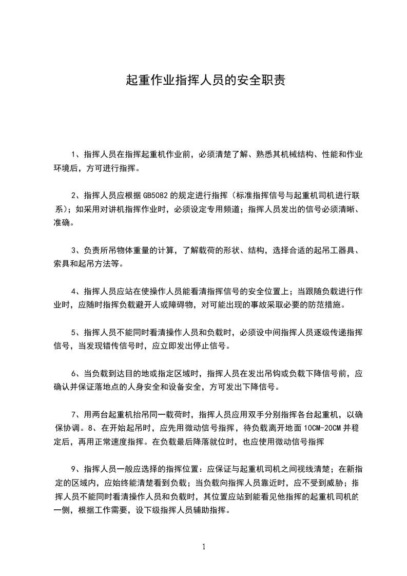 7、用两台起重机抬吊同一载荷时,指挥人员应用双手分别指挥各台起重机,以确保协调。8、在开始起吊时,应先用微动信号指挥,待负载离开地面10CM-20CM并稳定后,再用正常速度指挥。在负载最后降落就位时,也应使用微动信号指挥