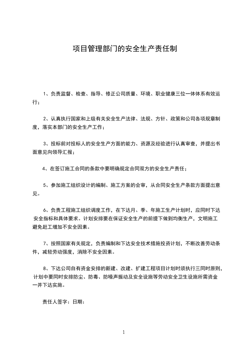 2、认真执行国家和上级有关安全生产法律、法规、方针、政策和公司各项规章制度,落实本部门的安全生产工作;