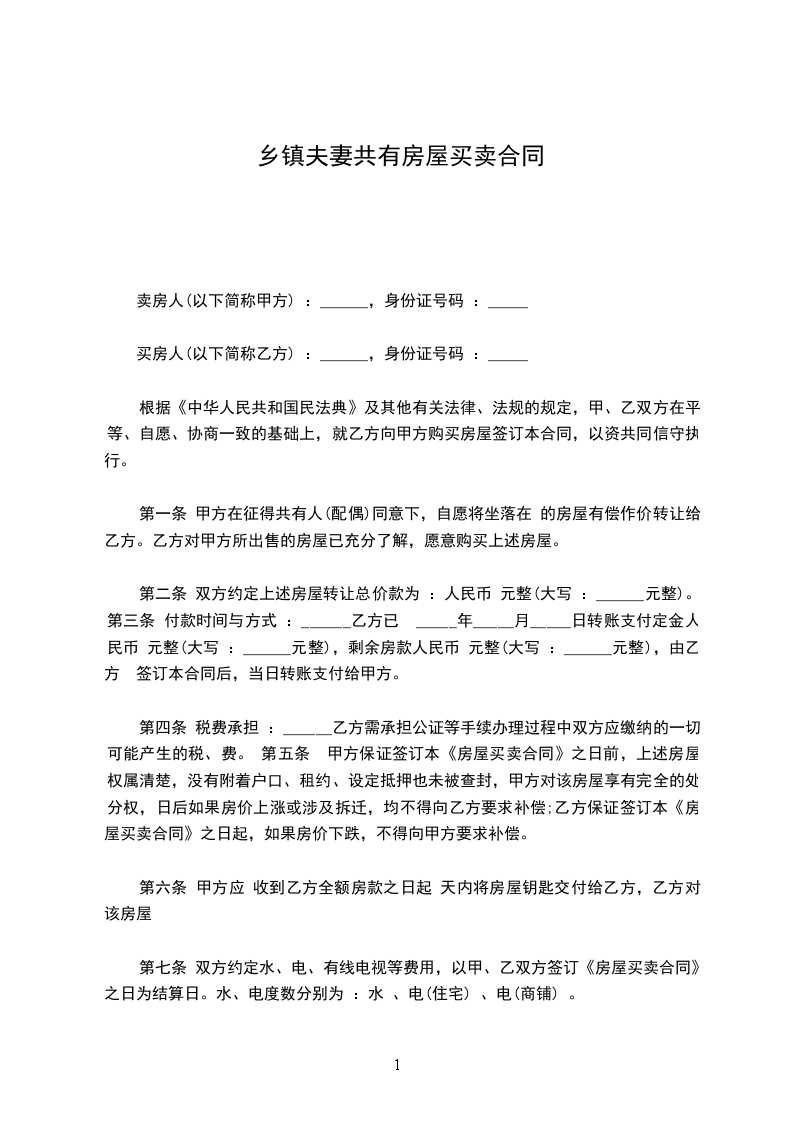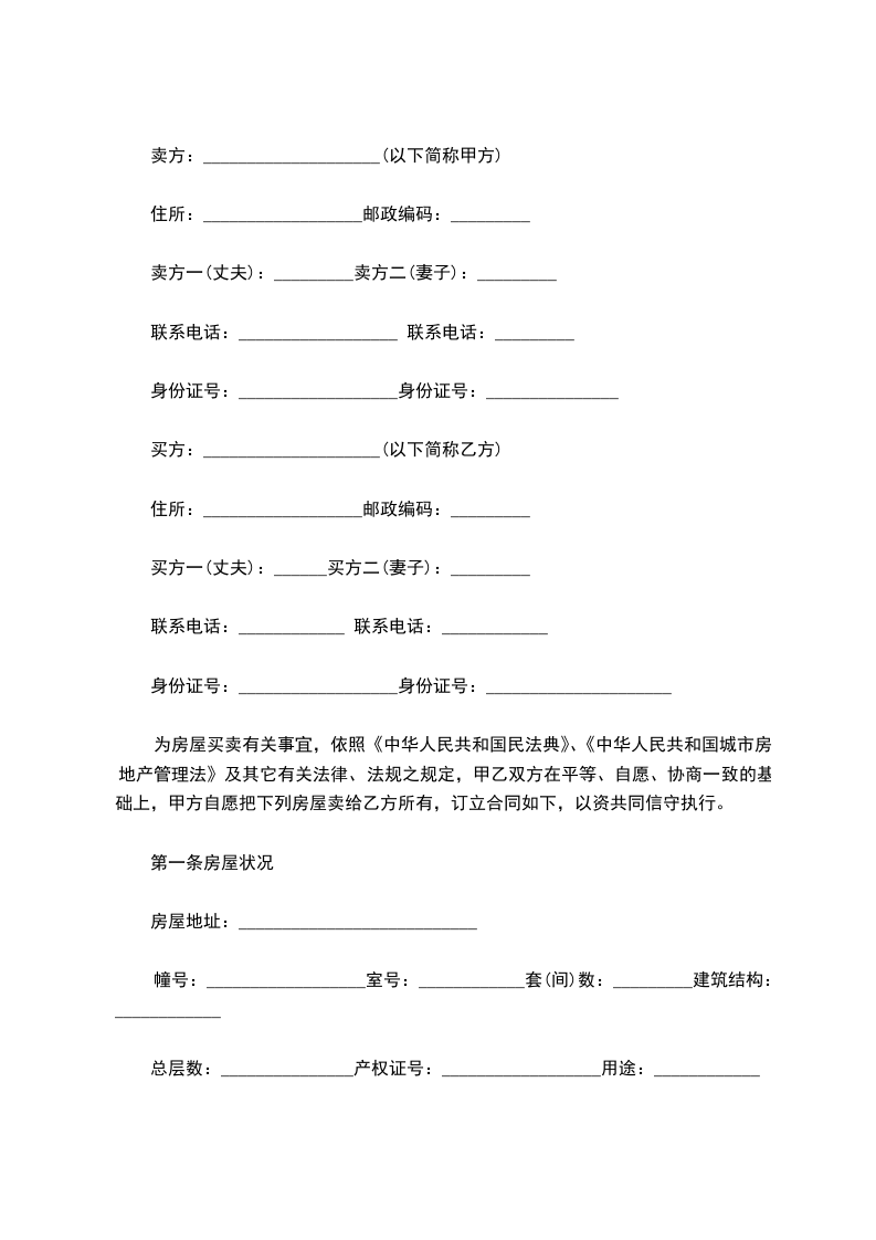 甲、乙双方于________年________月________日签订了《房屋买卖合同》。甲、乙双方在平等、自愿、协商一致的基础上达成如下协议,共同遵守: