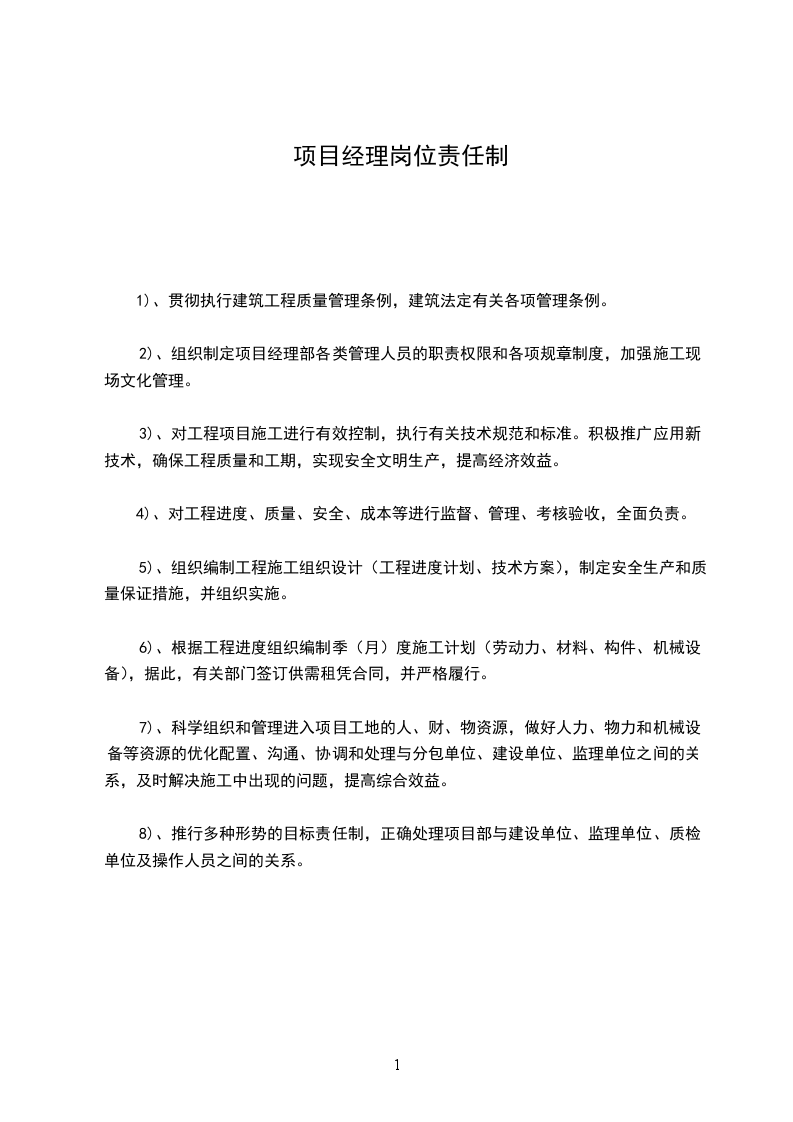 1)、贯彻执行建筑工程质量管理条例,建筑法定有关各项管理条例。