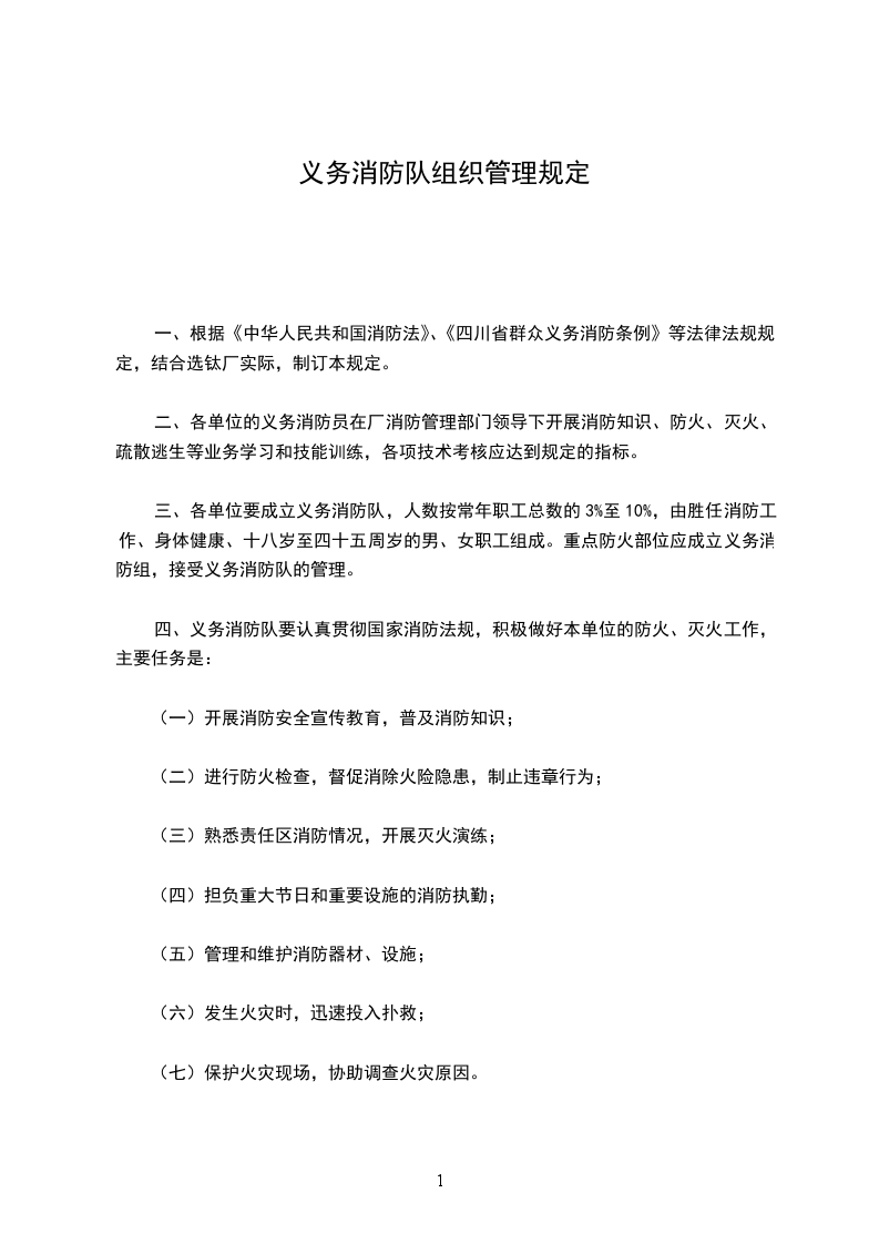 1、根据单位职工总数的10%组建义务消防队(不少于12人),应保证每个车间班组,每个班次都有义务消防队员;