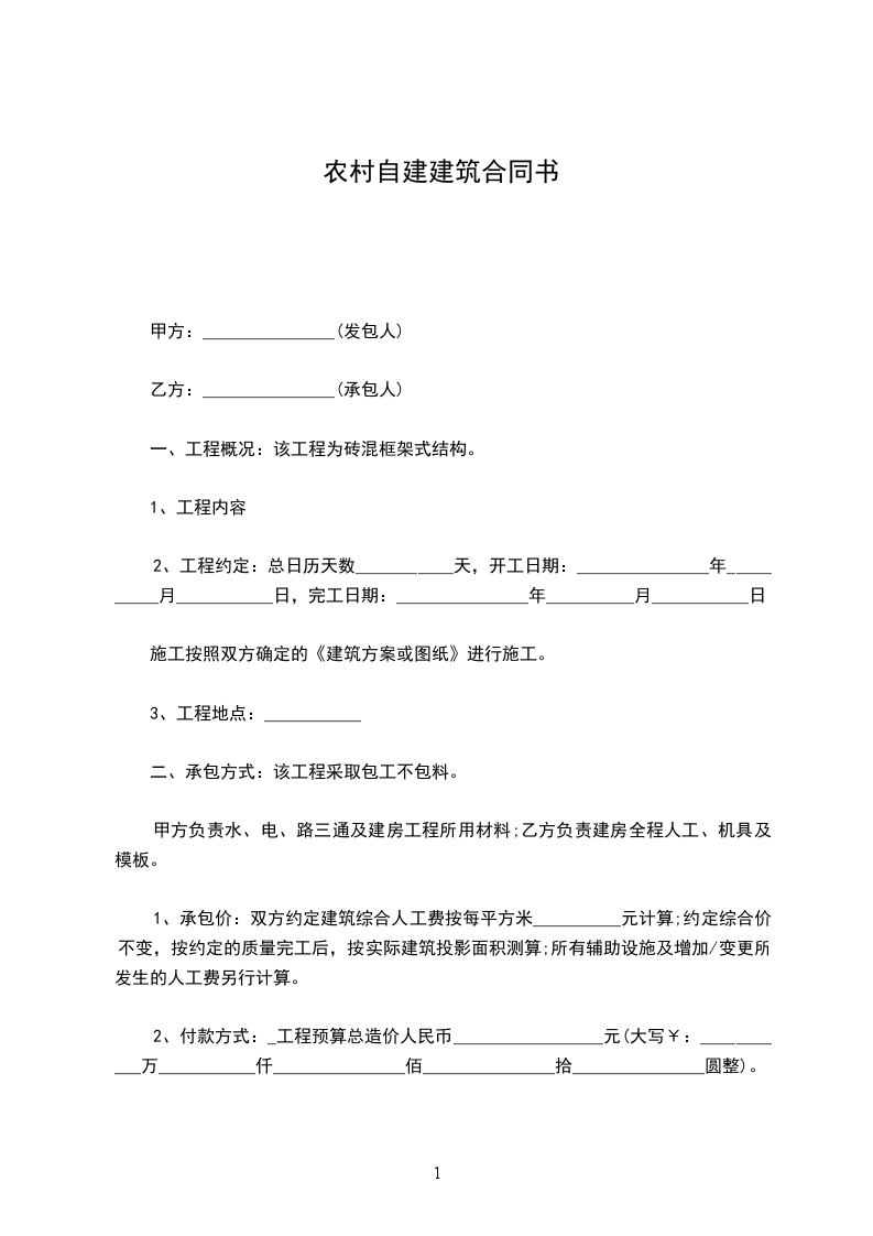 五、承包价格付款方式每平方米_________人民币大写:_______________元整_,建筑面积按竣工后实际测量为准。