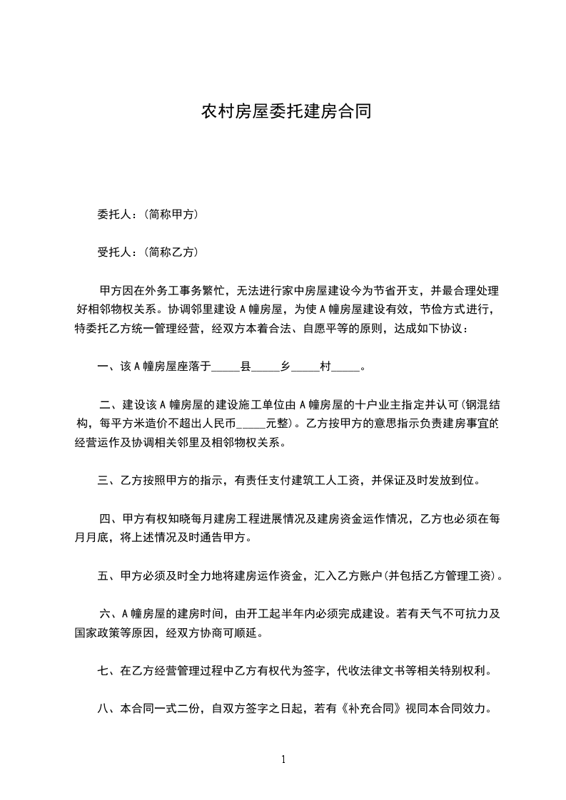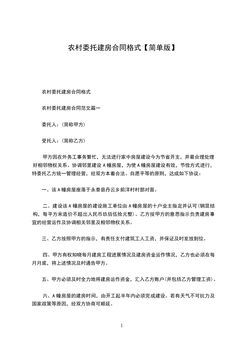 甲方在建房屋一栋,由乙方承包施工。为明确双方权利义务关系,经平等协商,双方自愿签订本合同。