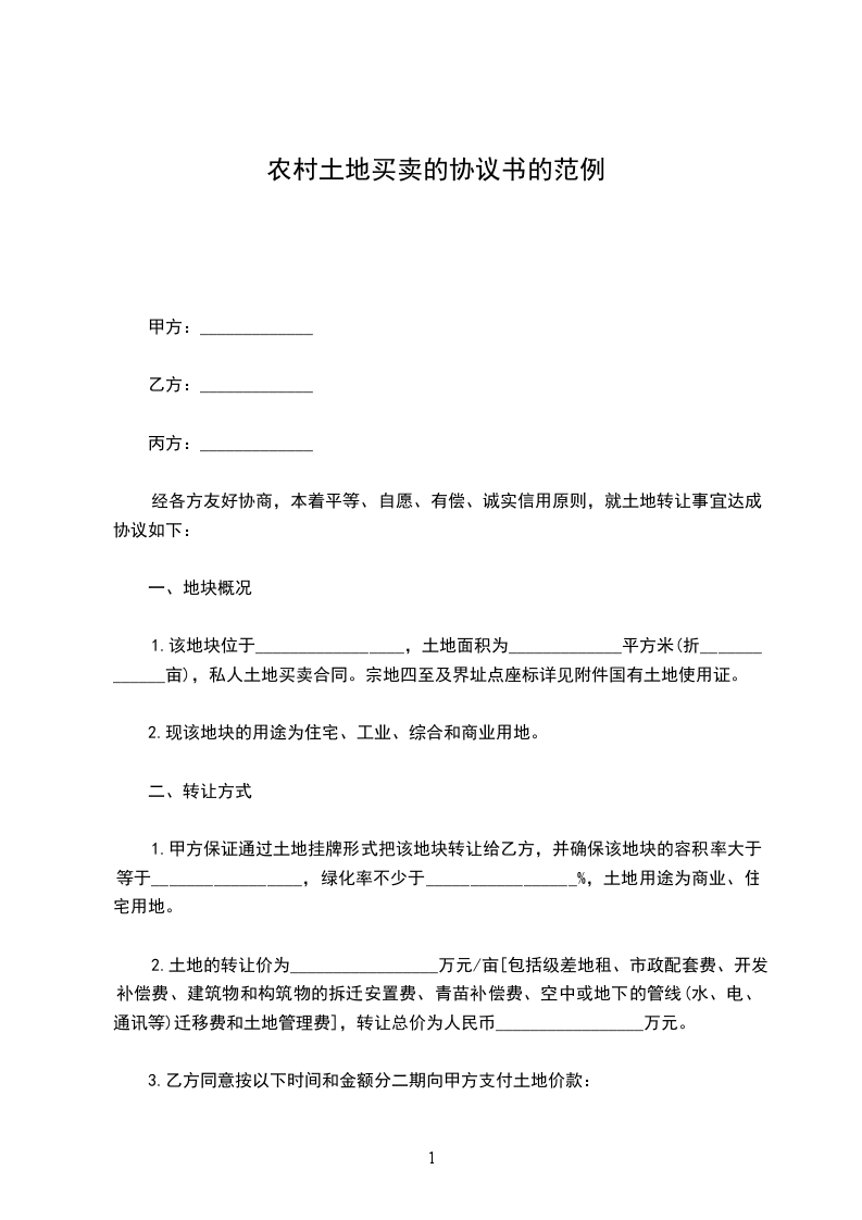1.该地块位于_________________,土地面积为_____________平方米(折_____________亩),私人土地买卖合同。宗地四至及界址点座标详见附件国有土地使用证。