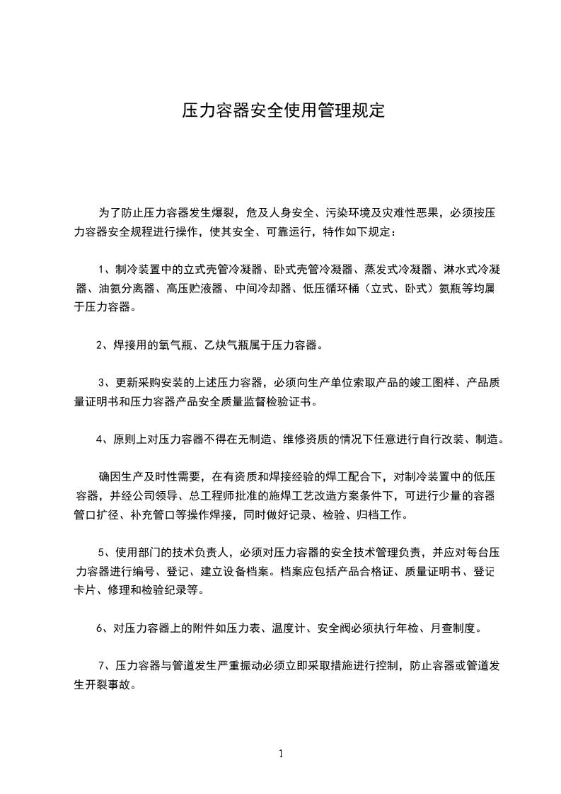 为了防止压力容器发生爆裂,危及人身安全、污染环境及灾难性恶果,必须按压力容器安全规程进行操作,使其安全、可靠运行,特作如下规定: