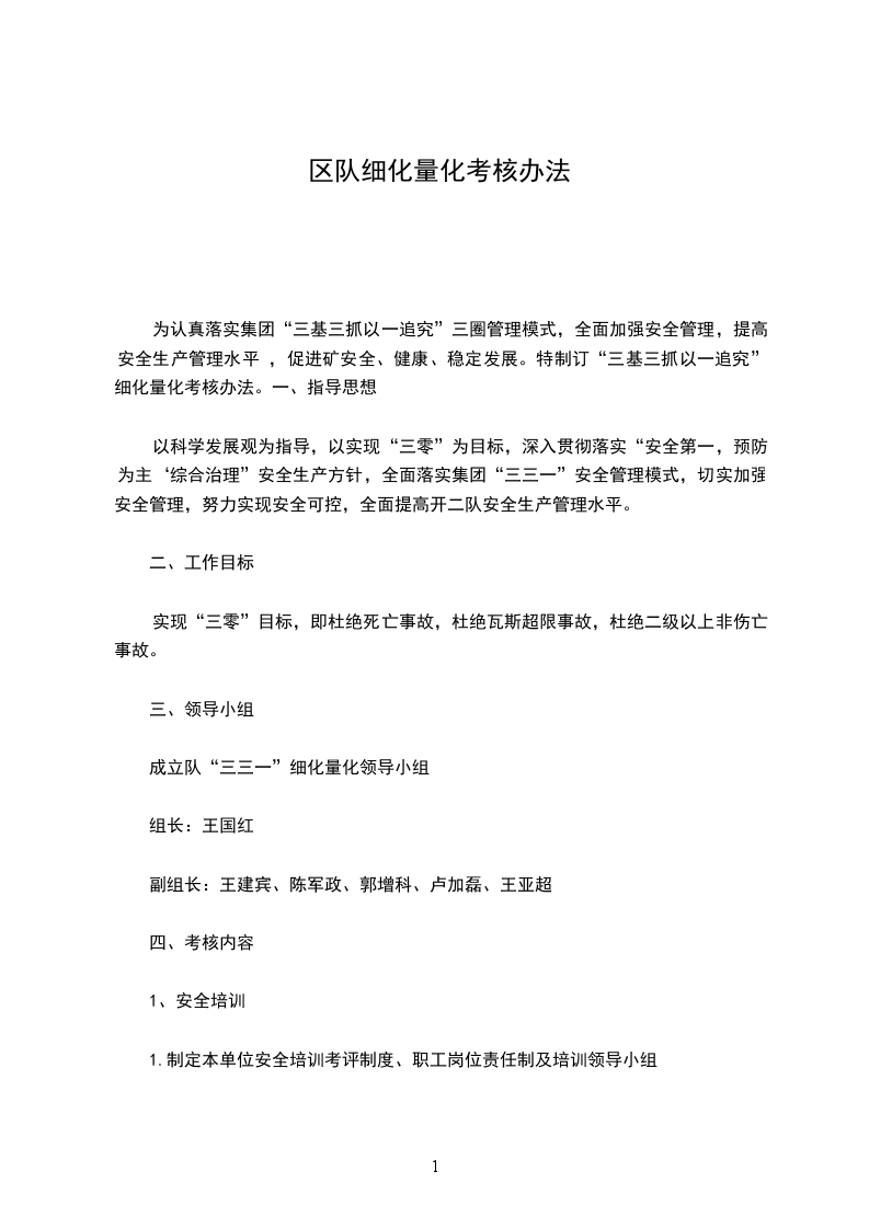 为认真落实集团“三基三抓以一追究”三圈管理模式,全面加强安全管理,提高安全生产管理水平 ,促进矿安全、健康、稳定发展。特制订“三基三抓以一追究”细化量化考核办法。一、指导思想