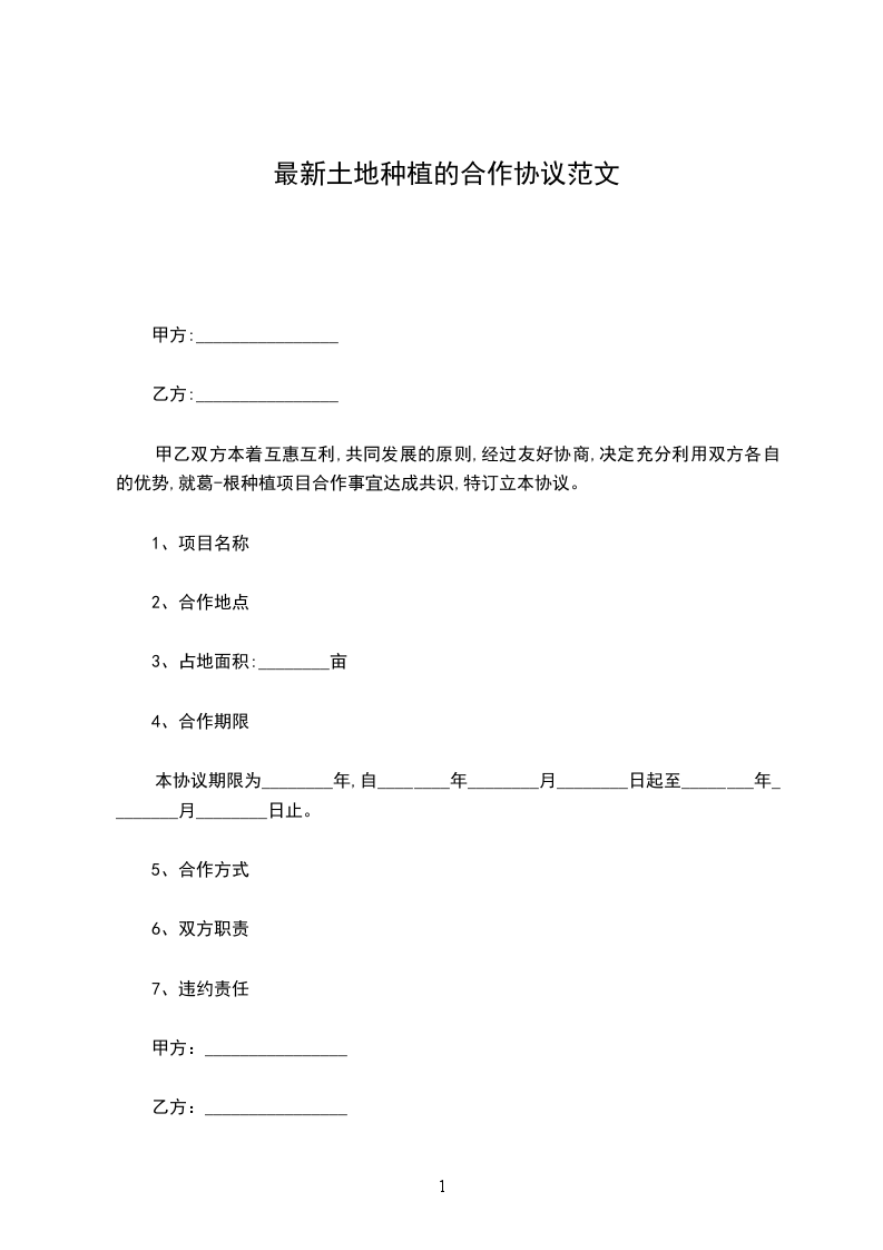 甲乙双方本着互惠互利,共同发展的原则,经过友好协商,决定充分利用双方各自的优势,就葛-根种植项目合作事宜达成共识,特订立本协议。