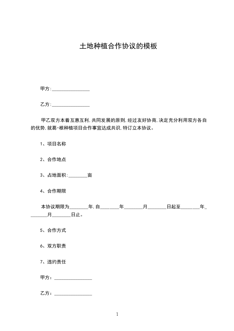 甲乙双方本着互惠互利,共同发展的原则,经过友好协商,决定充分利用双方各自的优势,就葛-根种植项目合作事宜达成共识,特订立本协议。
