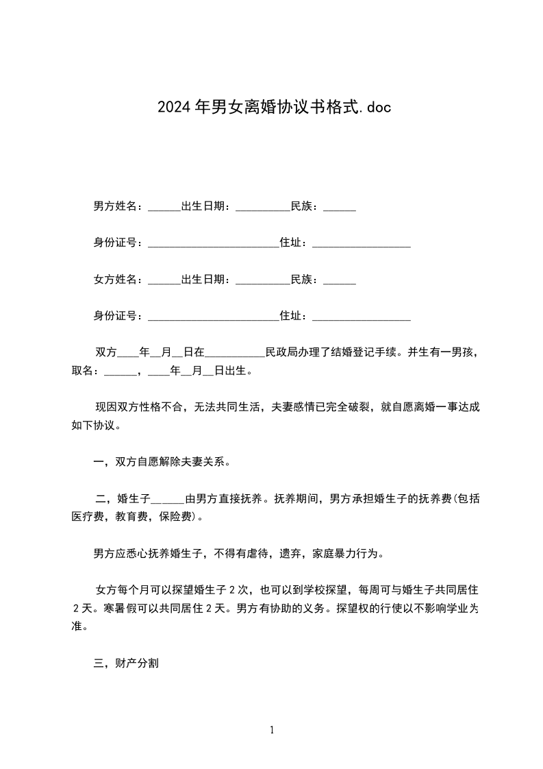 因协议人双方性格不合,夫妻感情破裂,无法继续共同生活,已无和好可能。现双方就自愿离婚一事达成如下协议: