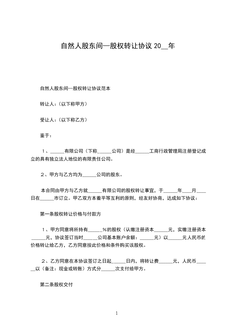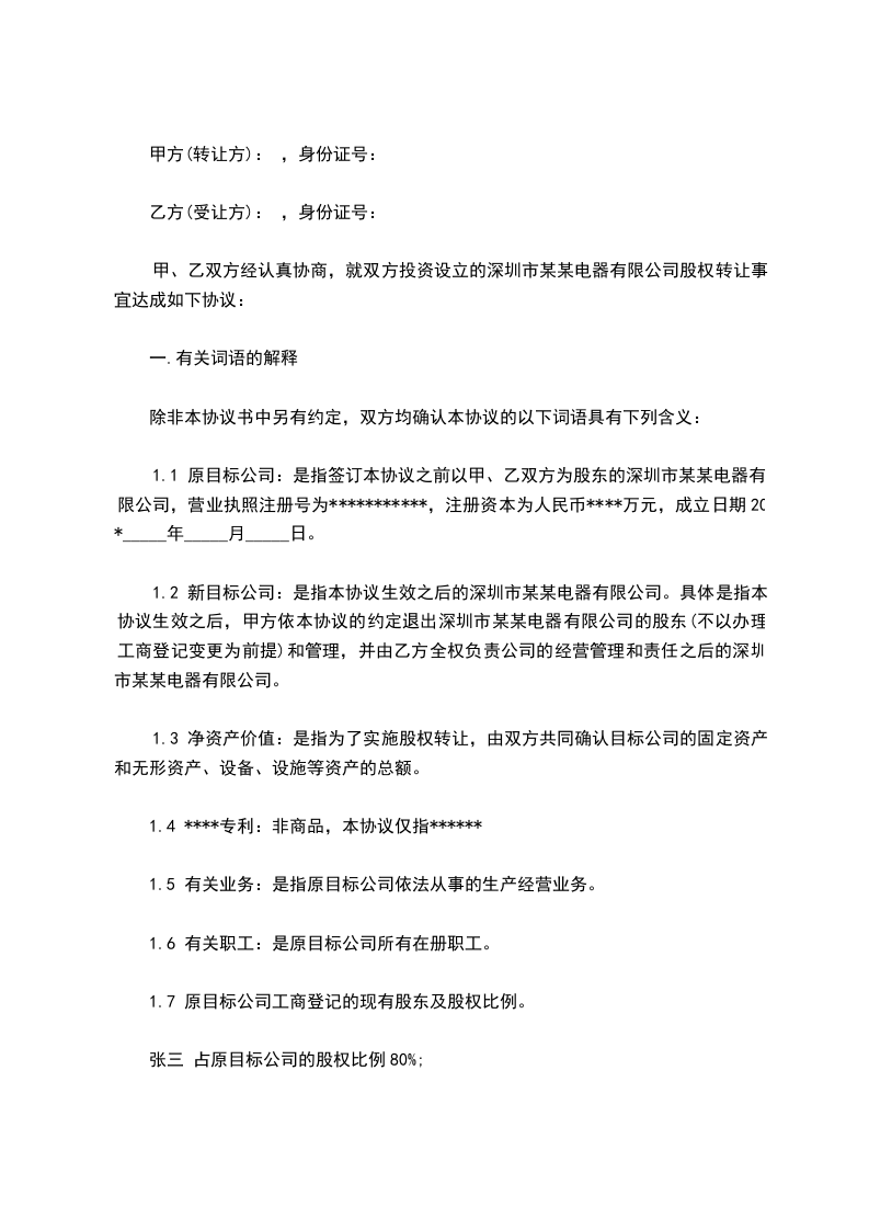 1、甲方将其持有该公司____%的股权转让给乙方;