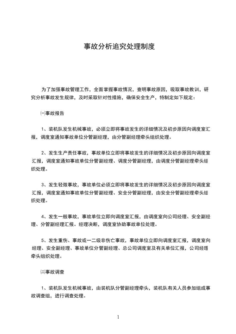 1、装机队发生机械事故,由装机队分管副经理牵头,装机队有关人员参加组成事故调查组,进行调查处理。