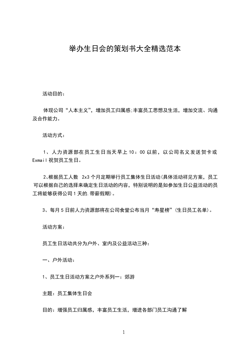1、员工生日活动方案之户外系列一:郊游