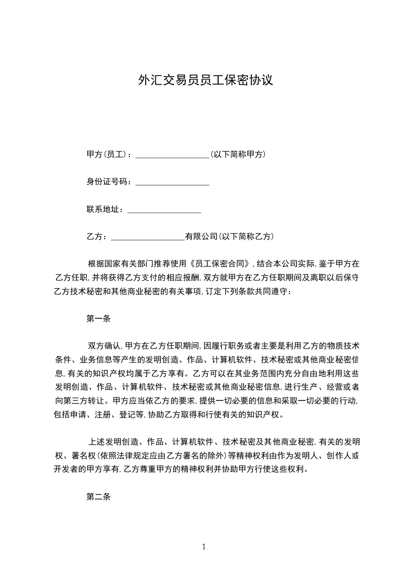 根据国家有关部门推荐使用《员工保密合同》,结合本公司实际,鉴于甲方在乙方任职,并将获得乙方支付的相应报酬,双方就甲方在乙方任职期间及离职以后保守乙方技术秘密和其他商业秘密的有关事项,订定下列条款共同遵守: