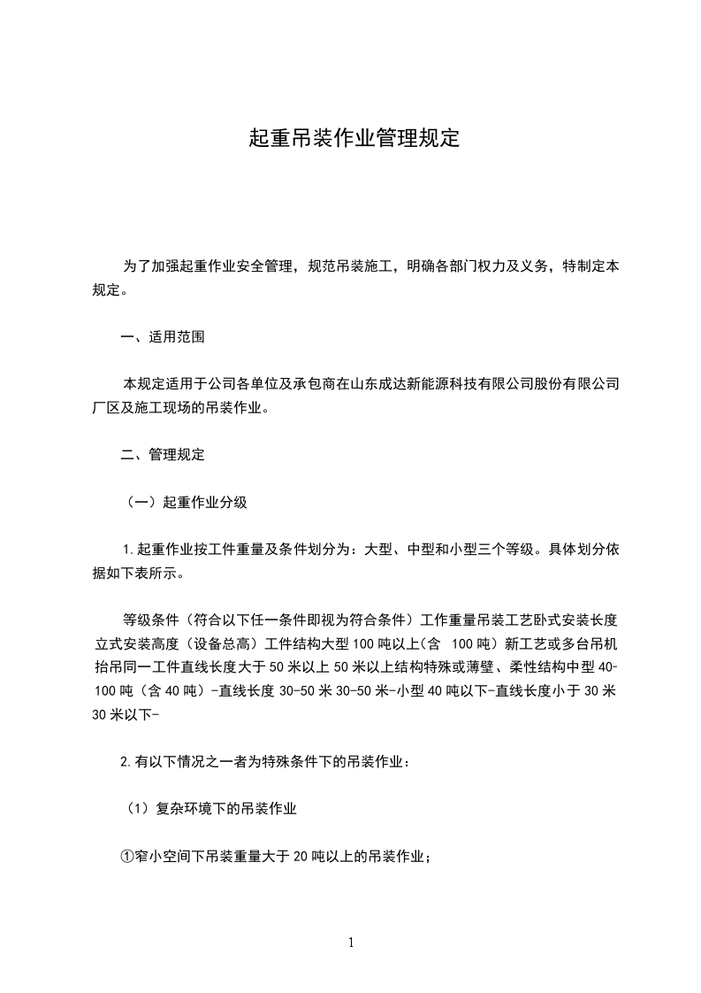 本规定适用于公司各单位及承包商在山东成达新能源科技有限公司股份有限公司厂区及施工现场的吊装作业。