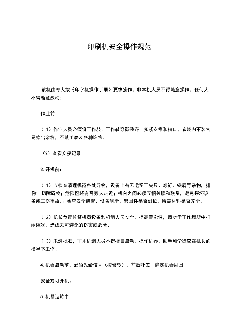 为加强公司印刷机的安全规范操作,避免和减少工伤事故的发生,保障员工安全,保障生产顺利进行,特制定本管理规定。