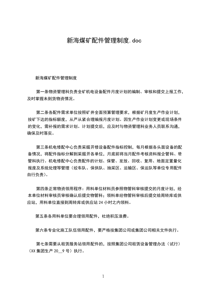 (二)凡属煤矿专用的配件,均按本制度执行。(三)配件管理