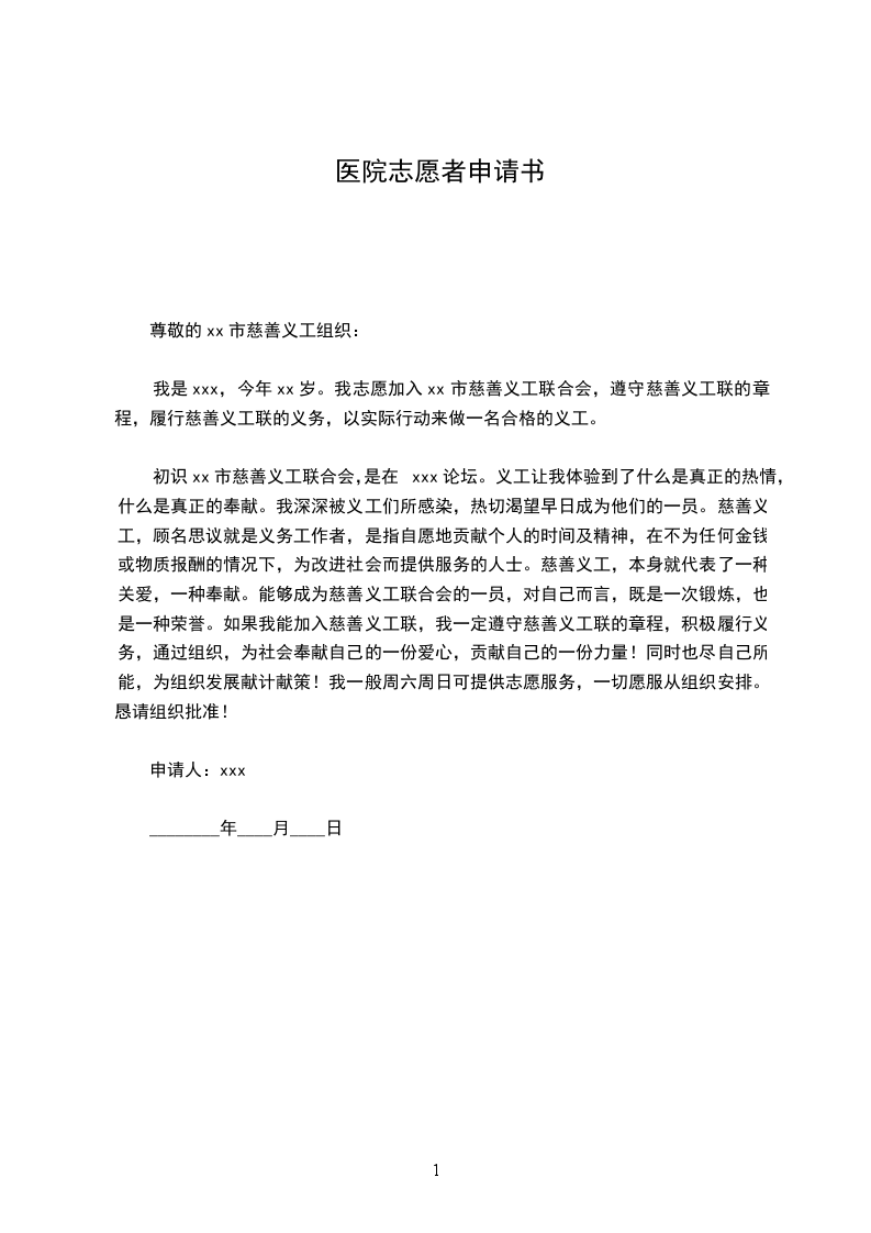初识xx市慈善义工联合会,是在xxx论坛。义工让我体验到了什么是真正的热情,什么是真正的奉献。我深深被义工们所感染,热切渴望早日成为他们的一员。慈善义工,顾名思议就是义务工作者,是指自愿地贡献个人的时间及精神,在不为任何金钱或物质报酬的情况下,为改进社会而提供服务的人士。慈善义工,本身就代表了一种关爱,一种奉献。能够成为慈善义工联合会的一员,对自己而言,既是一次锻炼,也是一种荣誉。如果我能加入慈善义工联,我一定遵守慈善义工联的章程,积极履行义务,通过组织,为社会奉献自己的一份爱心,贡献自己的一份力量!同时也尽自己所能,为组织发展献计献策!我一般周六周日可提供志愿服务,一切愿服从组织安排。恳请组织批准!