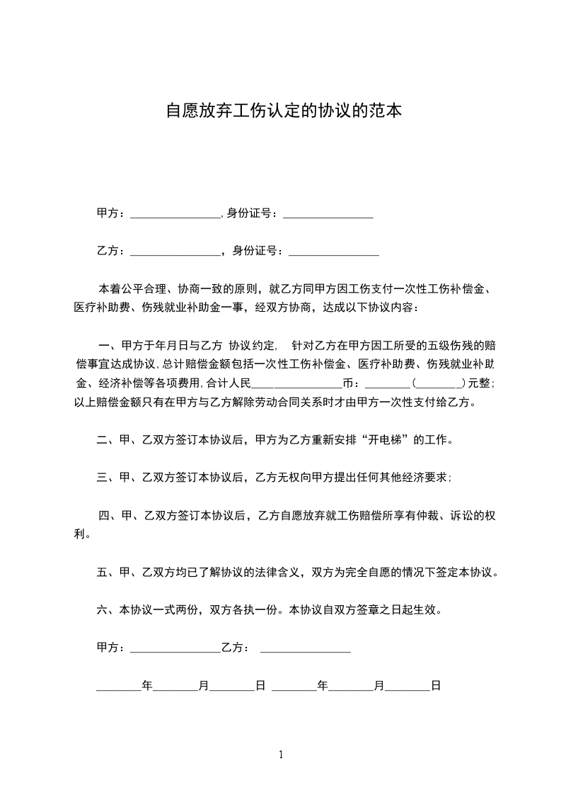 四、甲、乙双方签订本协议后,乙方自愿放弃就工伤赔偿所享有仲裁、诉讼的权利。