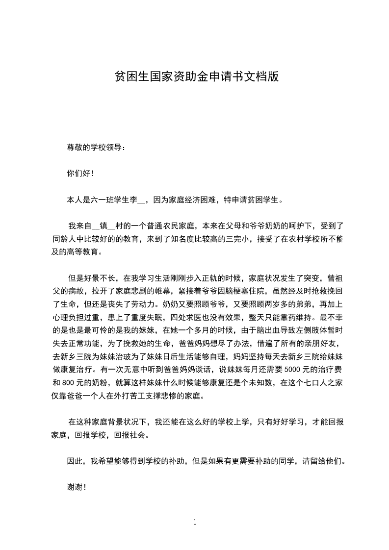 以上所说就是我家境情况,我是怀着真诚之心而写的,望校领导批准,感谢!日后出到社会工作,不忘帮助过自己的人,滴水之恩,涌泉相报。回报社会,帮助有需知人,再次感谢。。