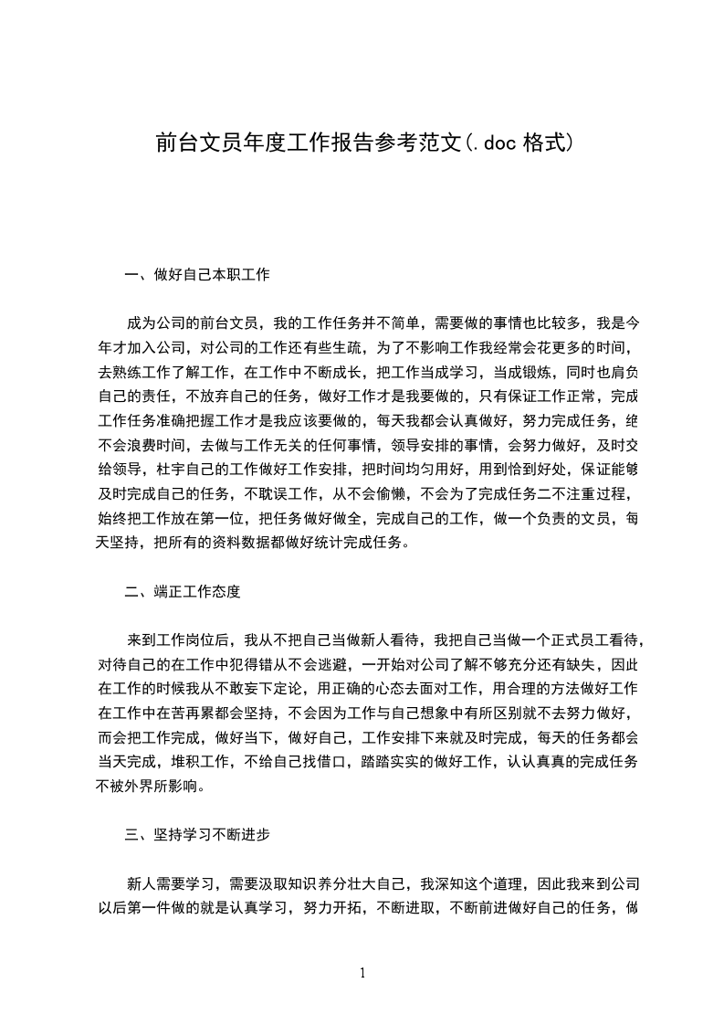 时间总是转瞬即逝,在智富惠公司工作已经工作一年了,我的收获和感触都很多,任职以来,我努力适应工作环境和前台这个崭新的工作岗位,认真地履行了自己的工作职责,较好地完成了各项工作任务。现将一年来的学习、工作情况总结如下: