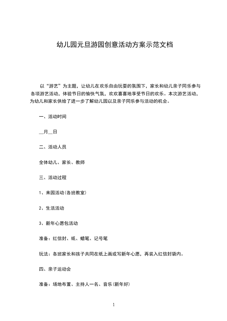(四)通过体育活动,培养幼儿与父母或同伴共同克服困难得胜利的精神,培养幼儿参加体育活动的兴趣,亲身体验体育活动的魅力。