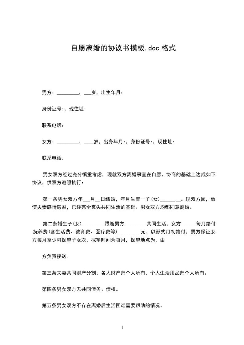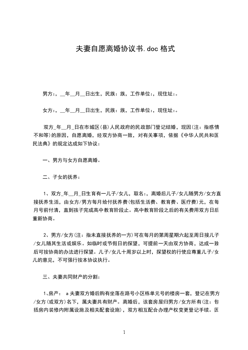 男女双方经过充分慎重考虑,现就双方离婚事宜在自愿、协商的基础上达成如下协议,供双方遵照执行: