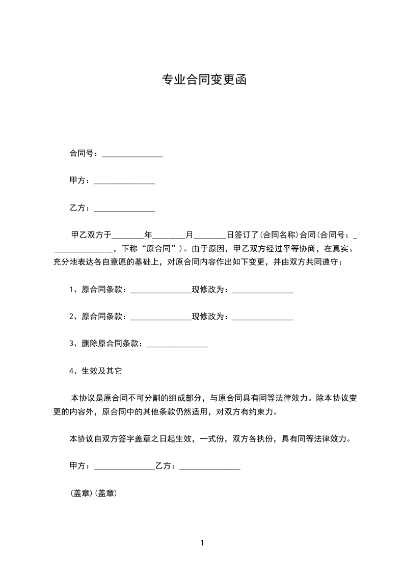 甲乙双方于________年________月________日签订了(合同名称)合同(合同号:_______________,下称“原合同”)。由于原因,甲乙双方经过平等协商,在真实、充分地表达各自意愿的基础上,对原合同内容作出如下变更,并由双方共同遵守: