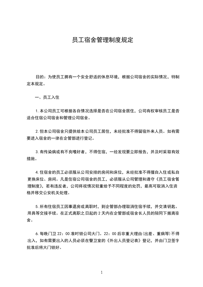 目的:为使员工拥有一个安全舒适的休息环境,根据公司宿舍的实际情况,特制定本规定。