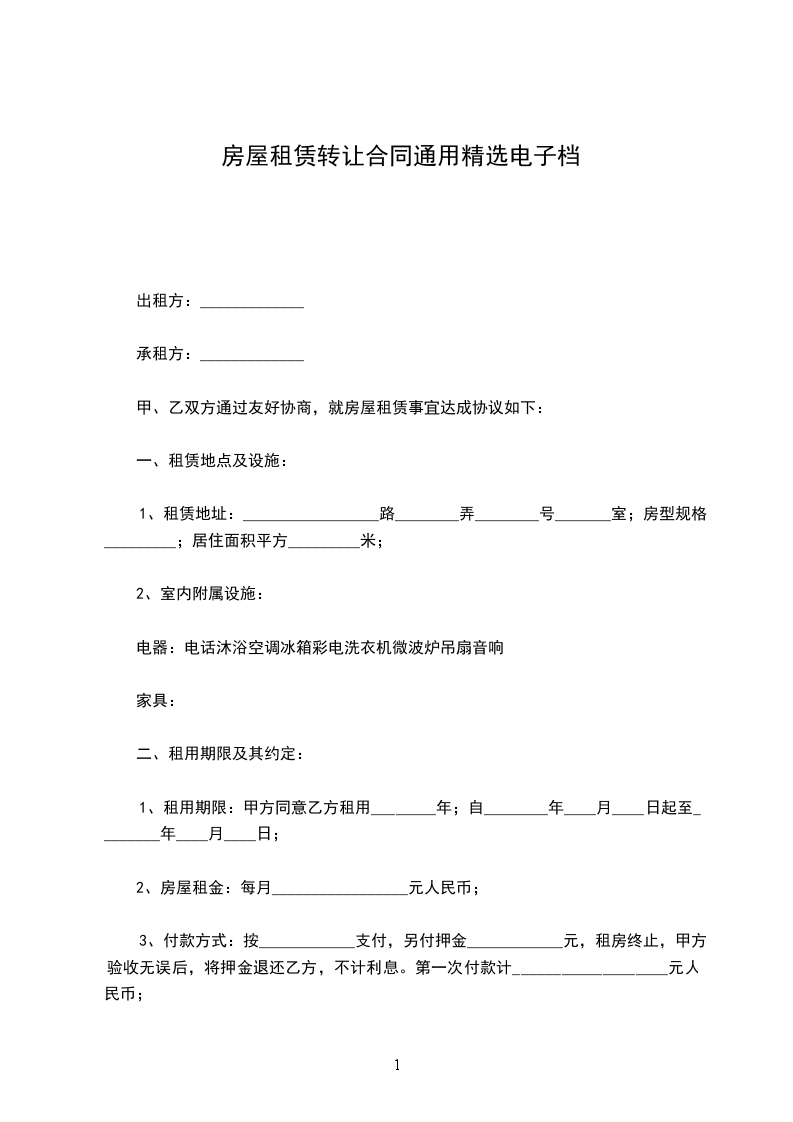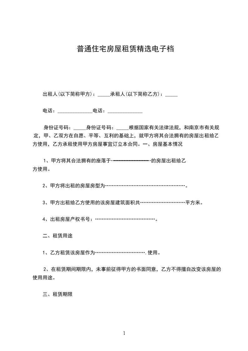 一、租期暂定年。即从________年________月________日至________年________月________日止。先付后住。