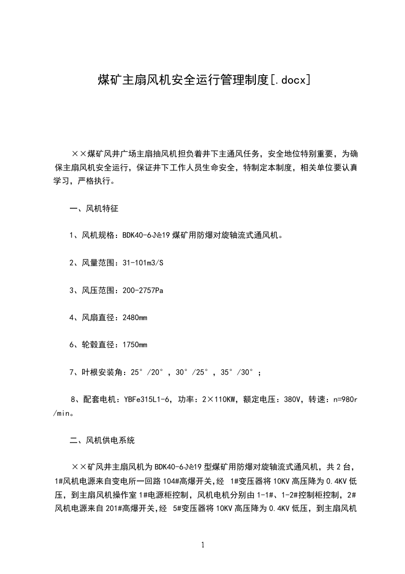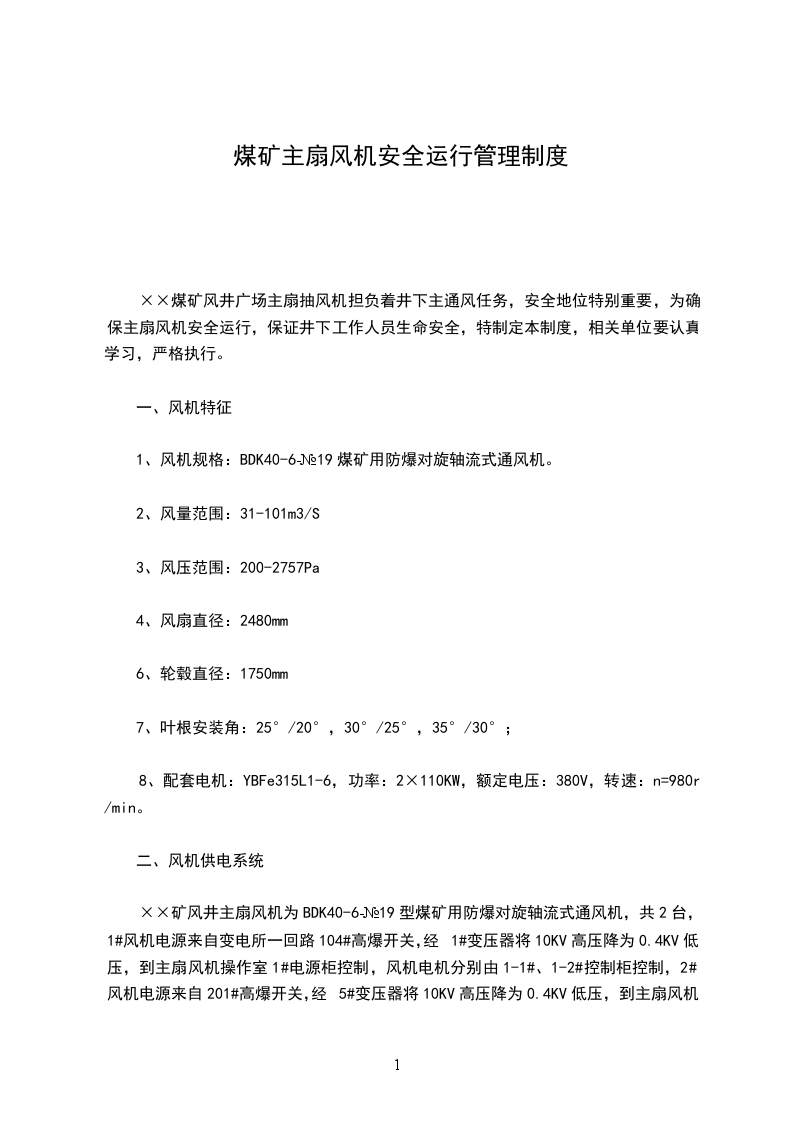 五、矿井主要扇风机及其附属设备,必须保持完好,以保证正常运转和矿井正常通风,确保安全生产。