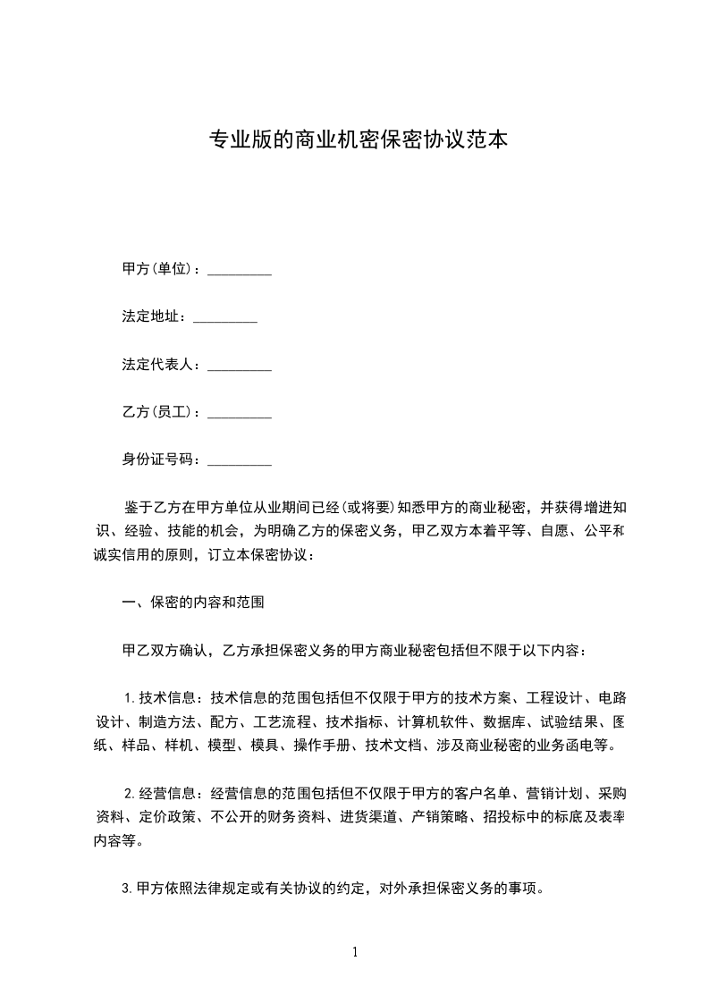 鉴于乙方在甲方单位从业期间已经(或将要)知悉甲方的商业秘密,并获得增进知识、经验、技能的机会,为明确乙方的保密义务,甲乙双方本着平等、自愿、公平和诚实信用的原则,订立本保密协议: