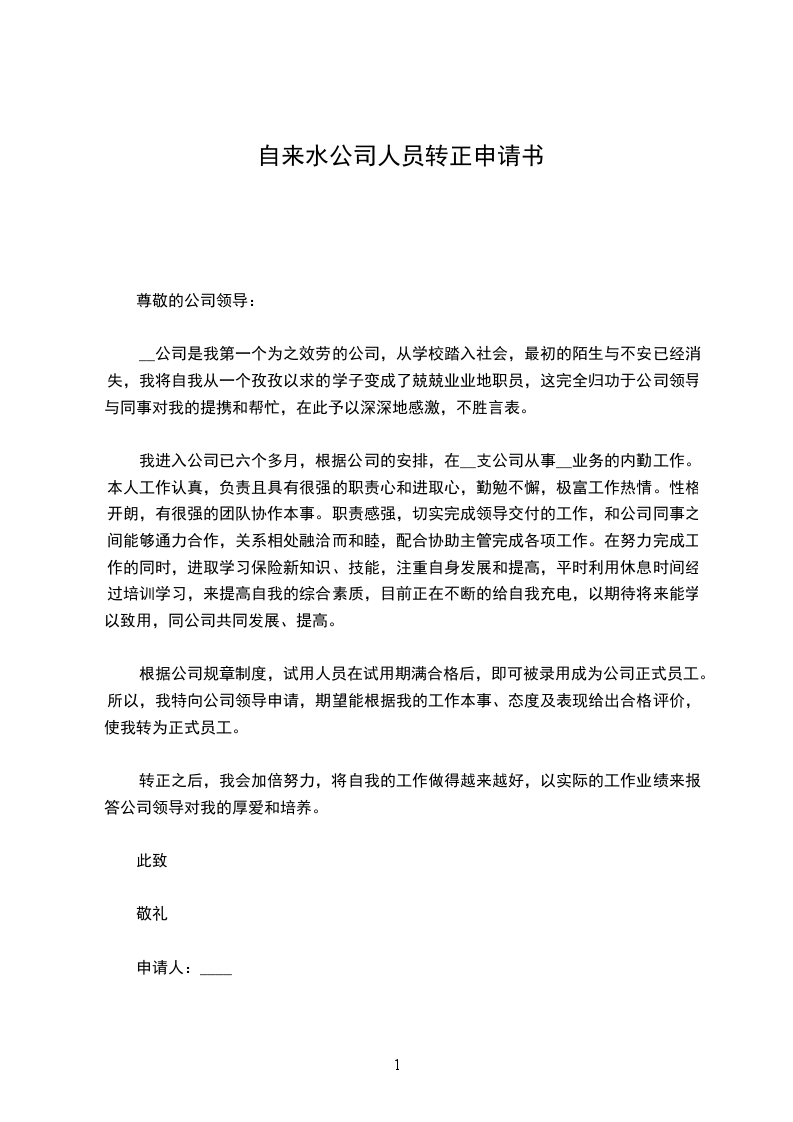 我20__年__月__日进入公司,根据公司的需要,目前担任一职,负责工作。