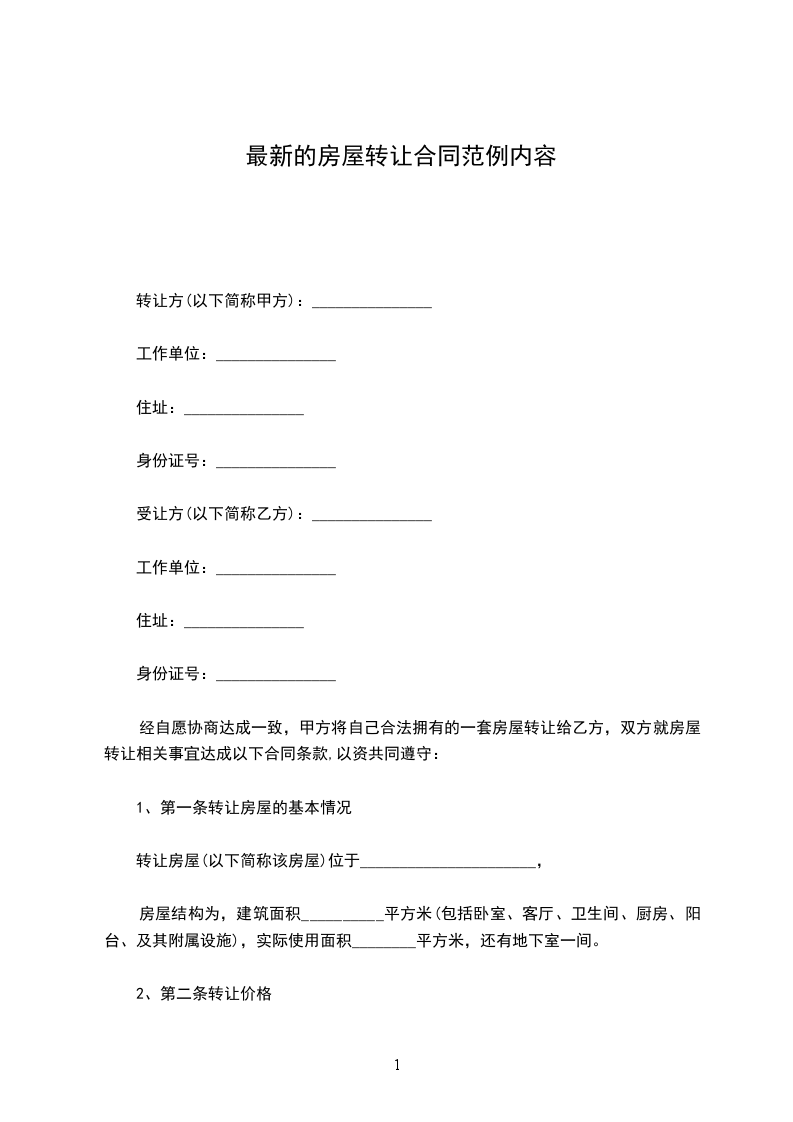 1、第一条转让房屋的基本情况