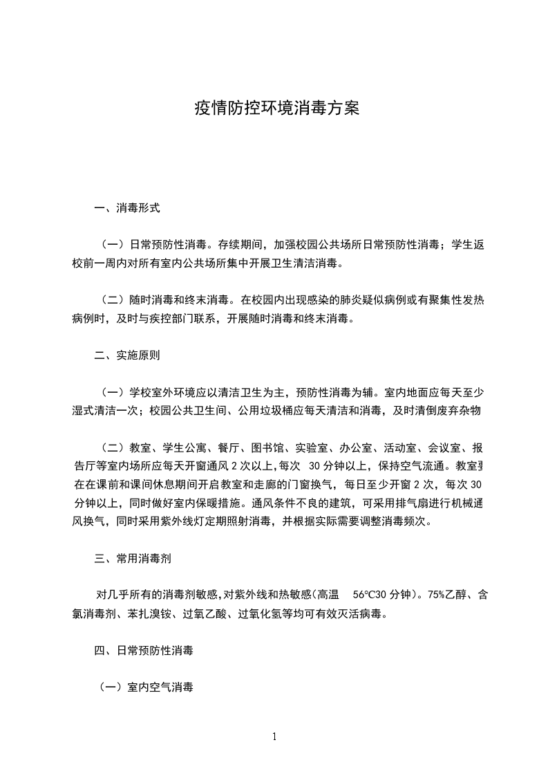 (一)日常预防性消毒。存续期间,加强校园公共场所日常预防性消毒;学生返校前一周内对所有室内公共场所集中开展卫生清洁消毒。