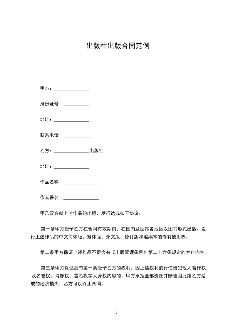 第二条甲方保证上述作品不得含有《出版管理条例》第二十六条规定的禁止内容。