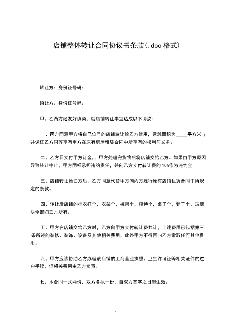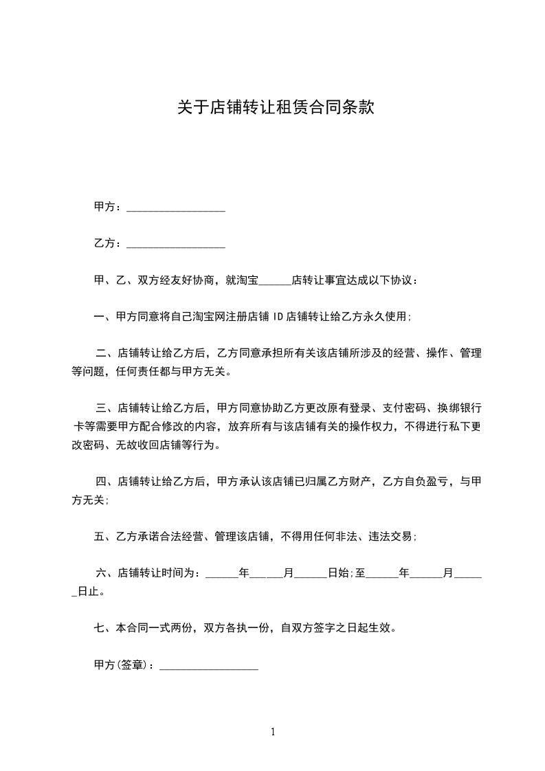 一、甲方同意将自己淘宝网注册店铺ID店铺转让给乙方永久使用;