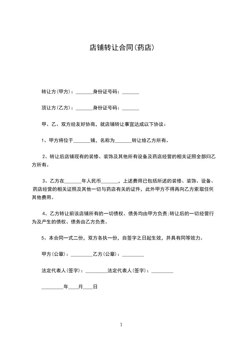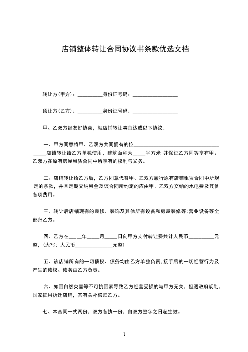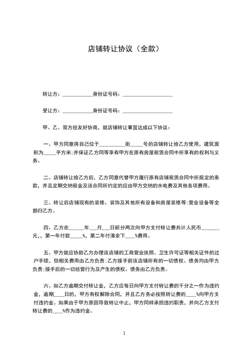 六、店铺转让时间为:______年______月______日始;至______年______月______日止。