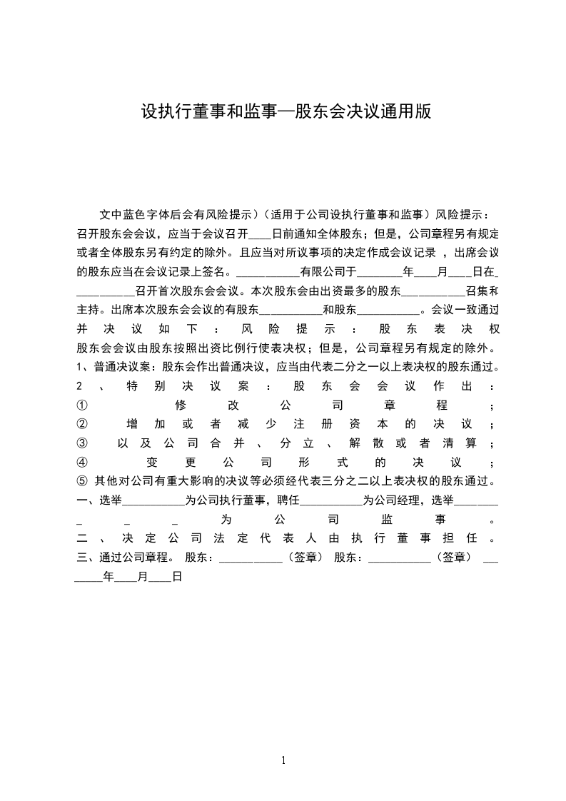 一、选举________、________、________、________、________为________有限公司首届董事会成员。